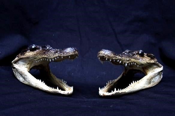 A striking taxidermy specimen featuring an authentic alligator head, ideal for collectors and enthusiasts of natural history displays. This piece brings dramatic character to curated collections and distinctive interior spaces.