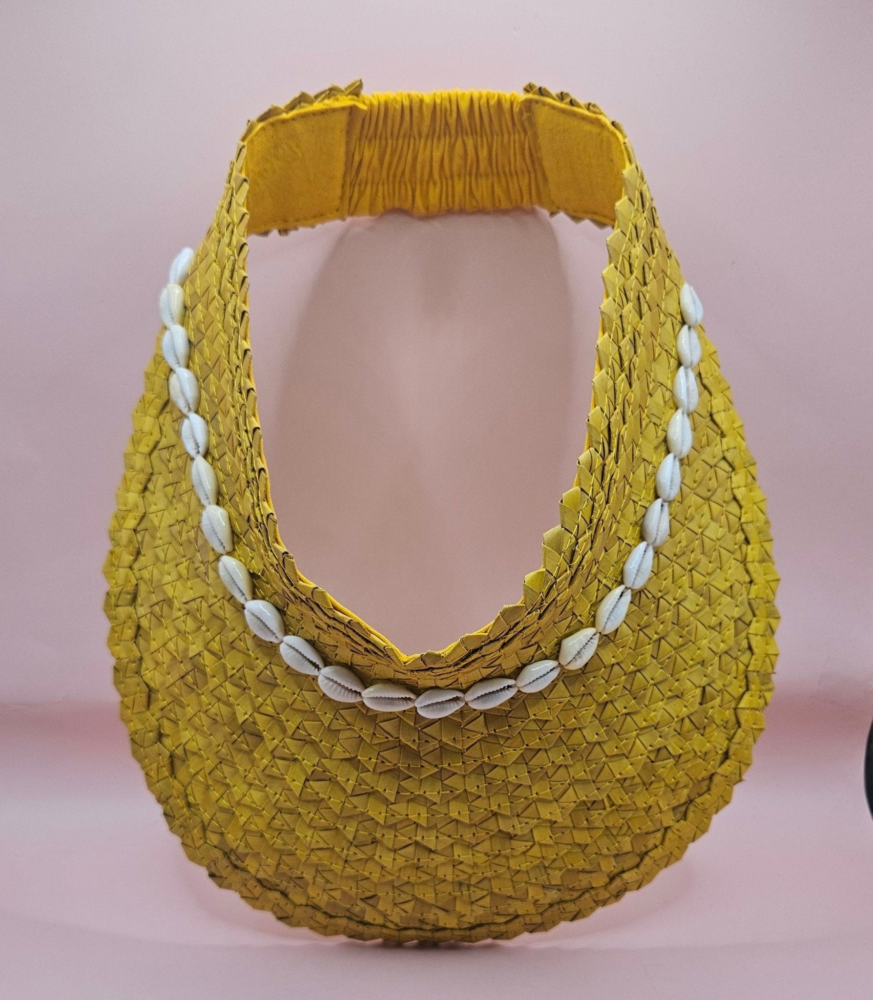Bring island vibes to your everyday look with our cowrie shell-trimmed woven palm leaf visors. These vibrant, handmade sun visors are crafted from dyed palm straw and accented with real cowrie shells along the band. Featuring a stretch-back for a comfortable fit, they’re ideal for beach days, festivals, and sunny strolls. Available in black, turquoise blue, olive green, or mustard yellow.