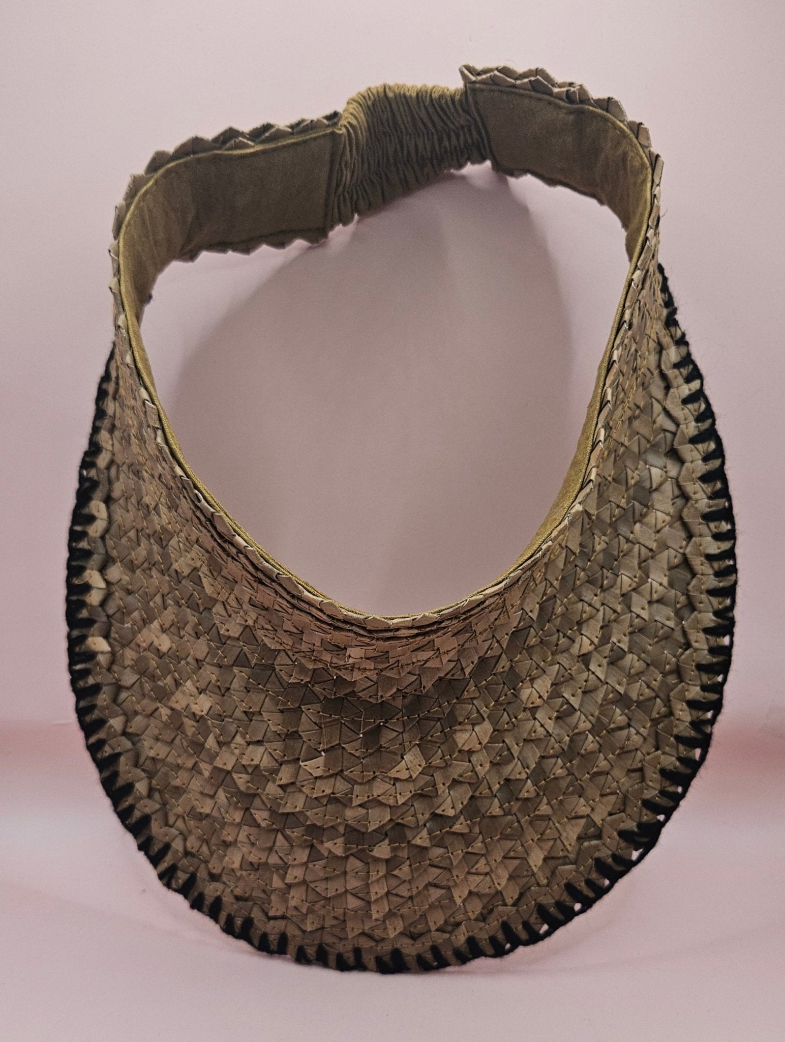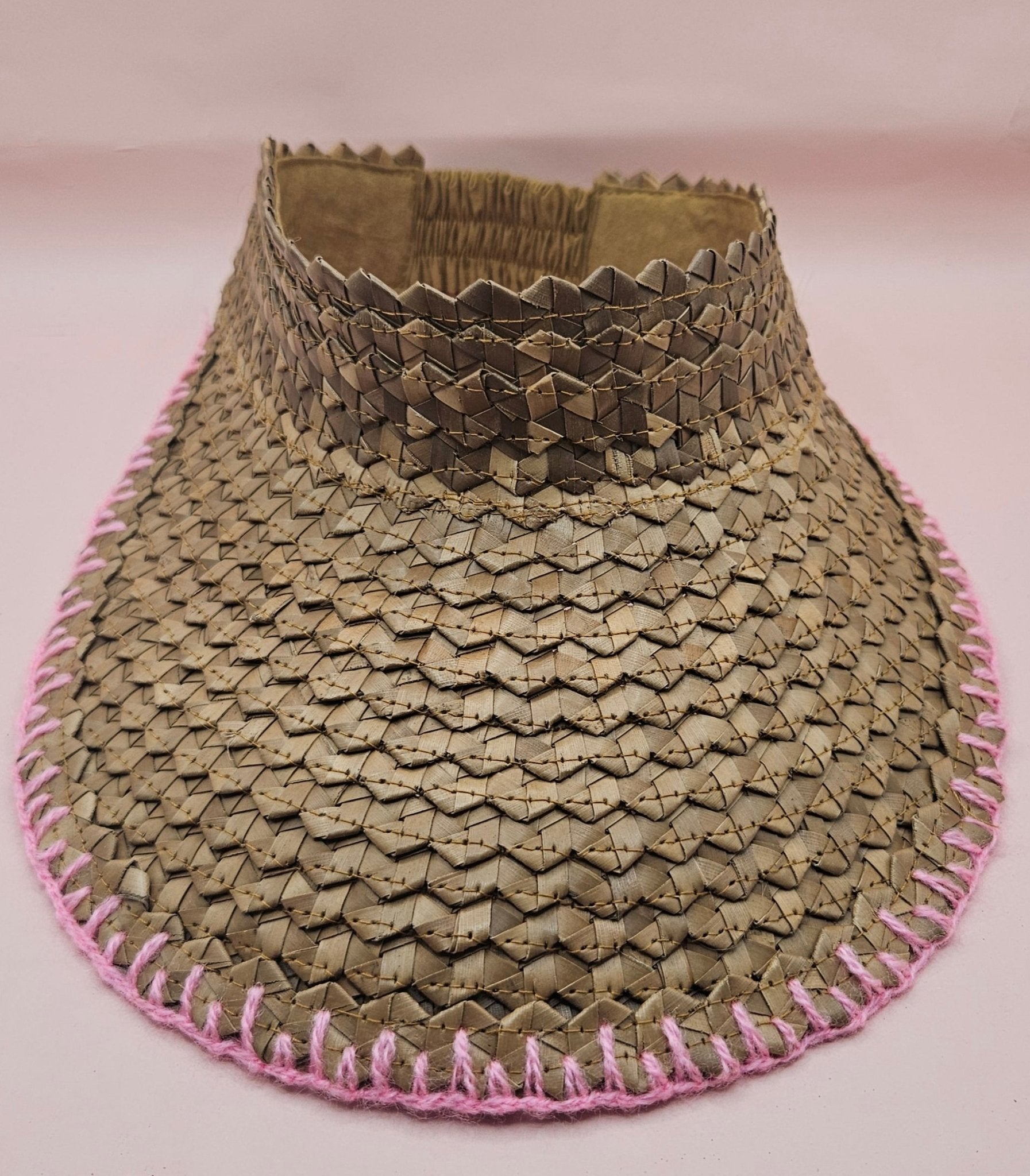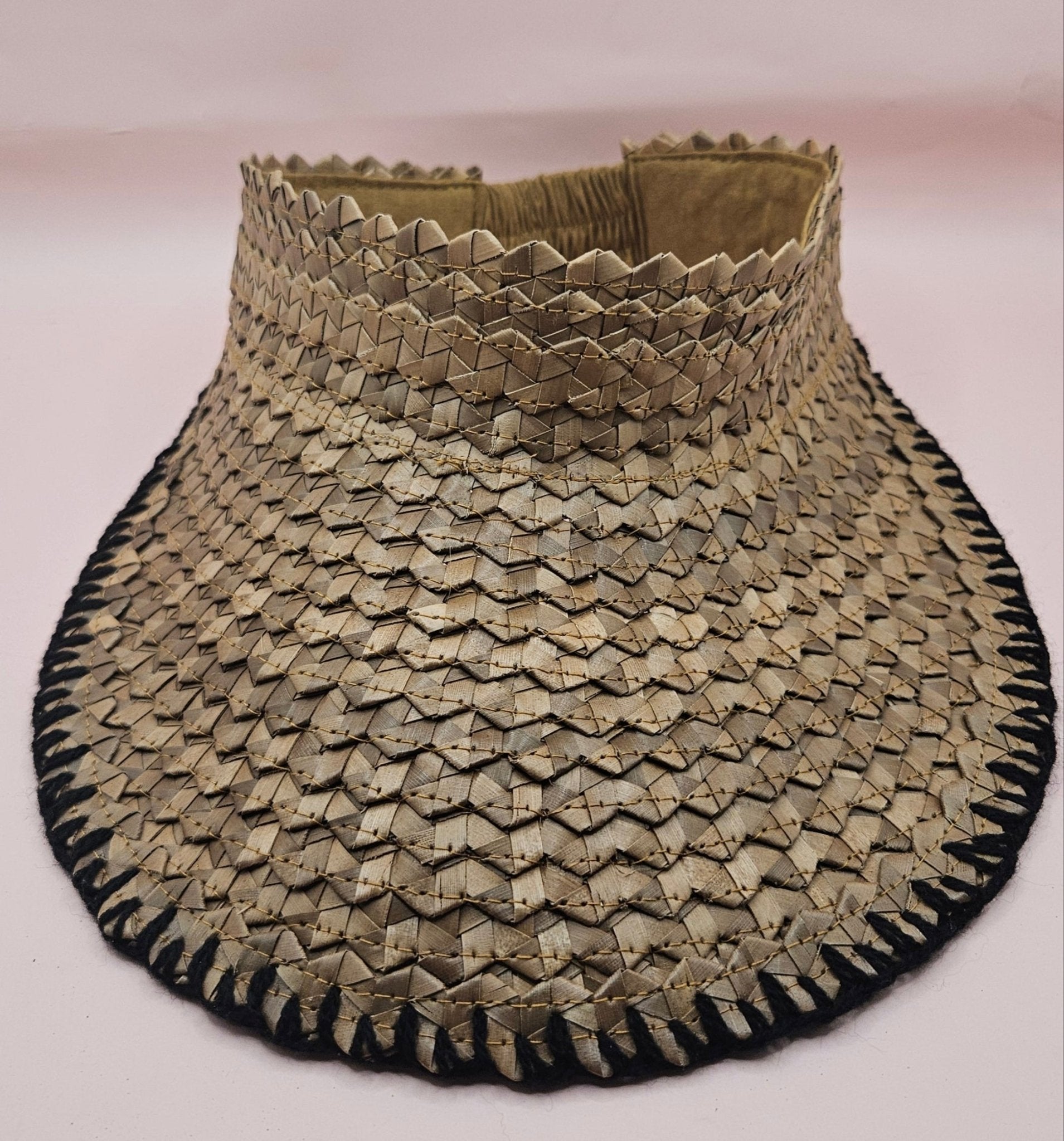 Natural Woven Palm Leaf Visor – Black, Pink, Yellow, or Cream Stitched Trim | Straw Sun Hat