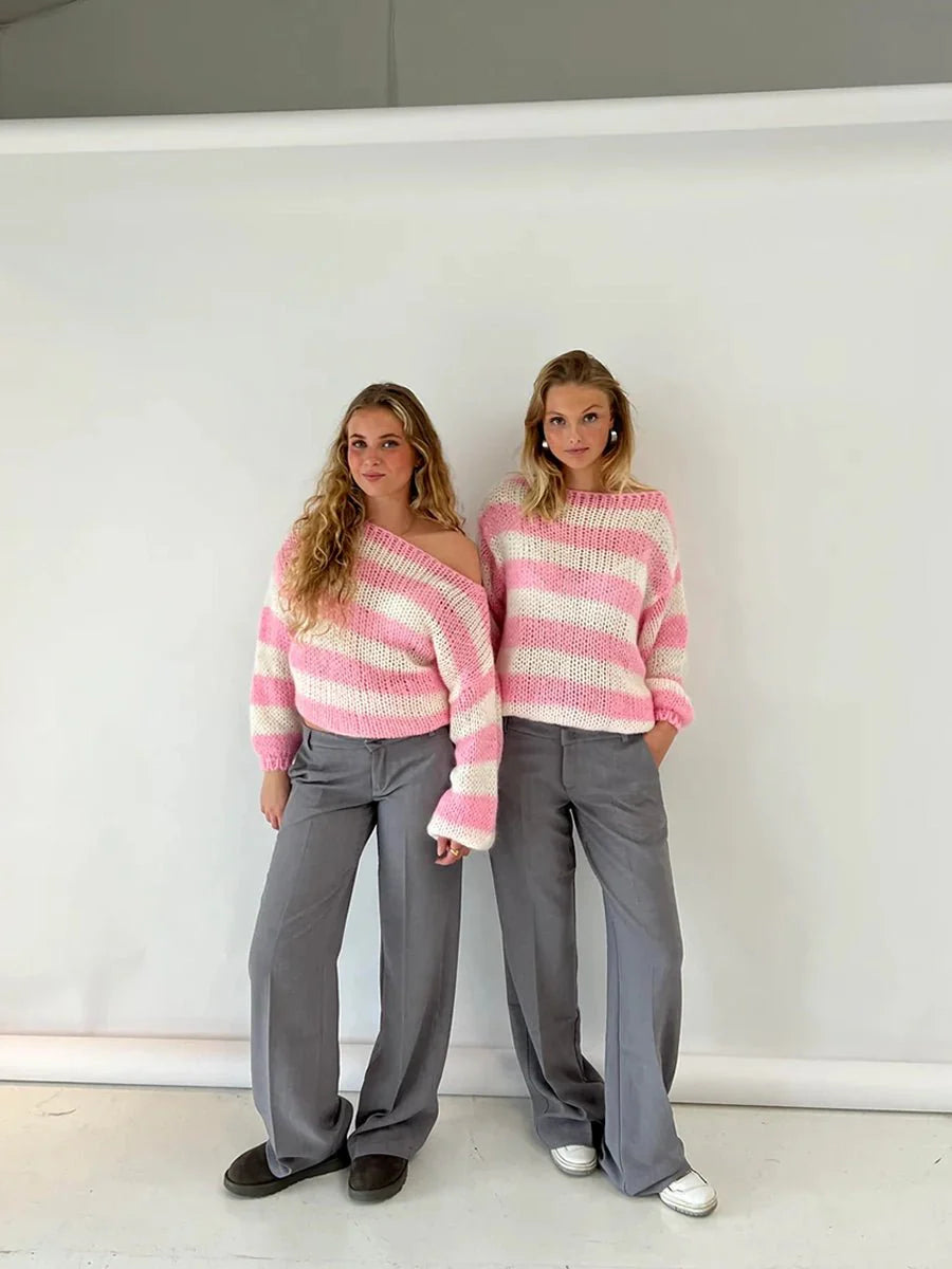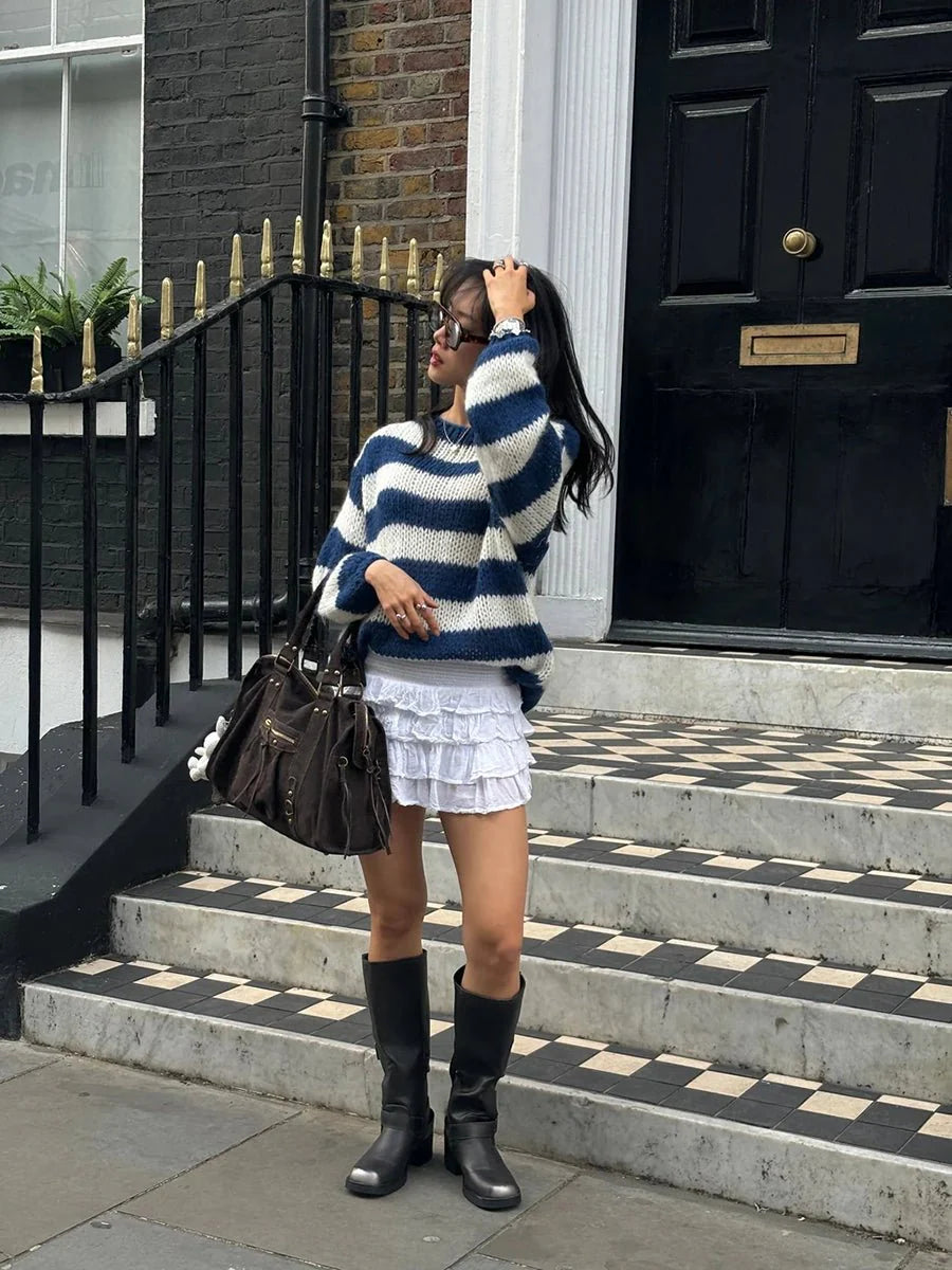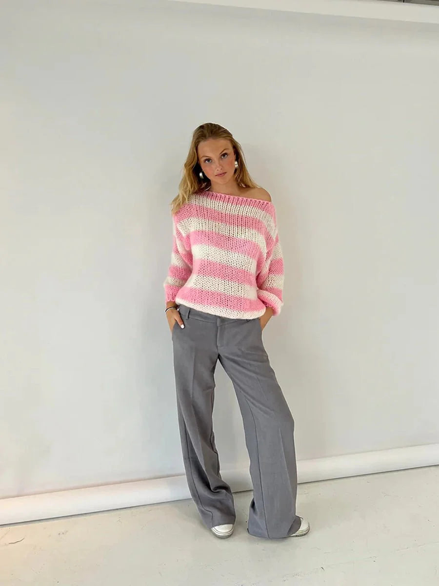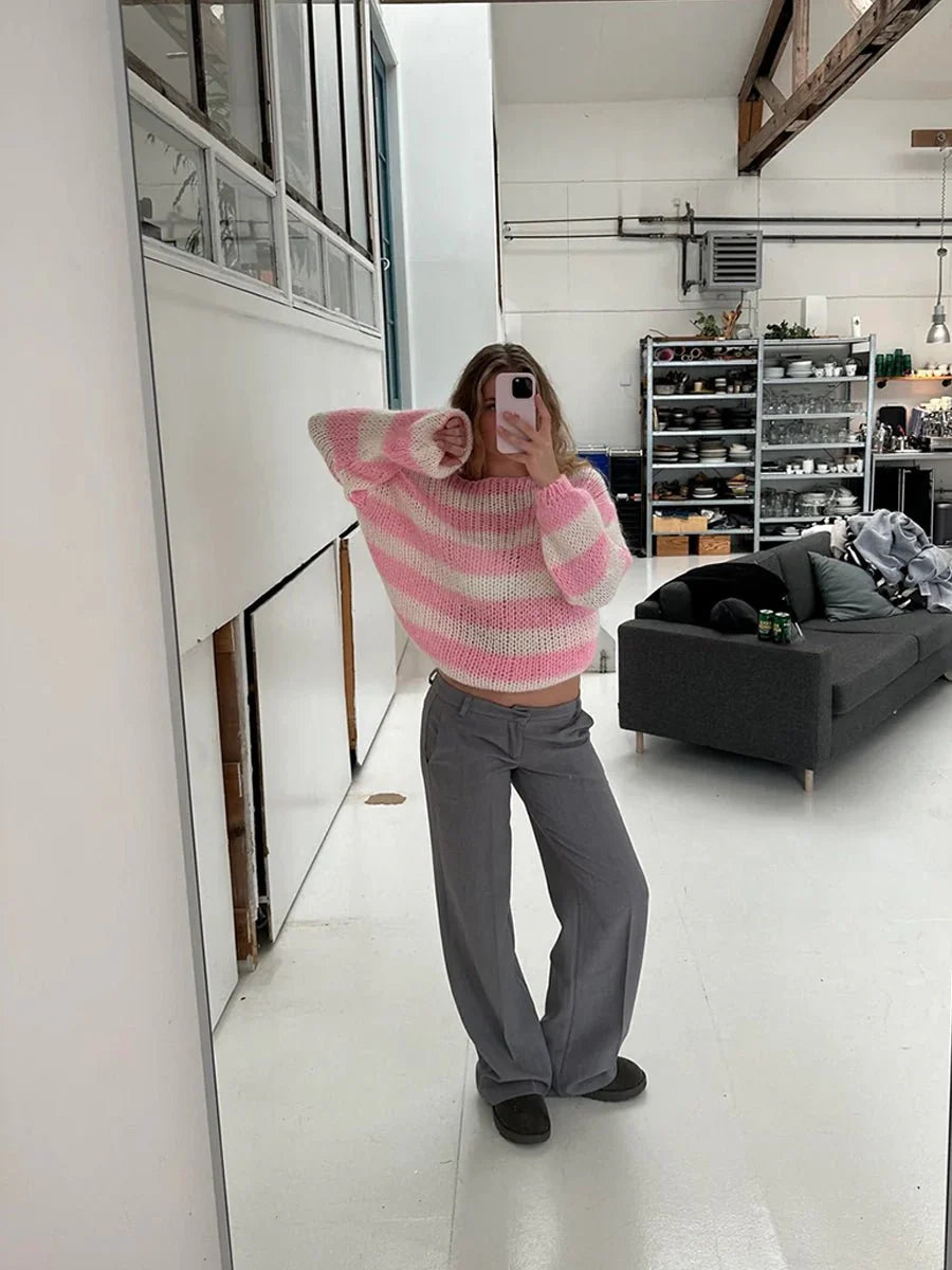 The Jaida Loose Striped Pullover Sweater is a versatile piece that can be dressed up or down depending on the occasion. Pair it with a skirt and ankle boots for a stylish night out, or throw it on with sweatpants for a cozy night in. However you choose to wear it, this sweater is sure to become a go-to favorite in your collection.