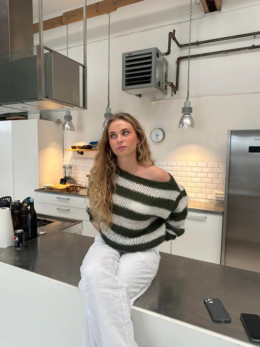 This pullover sweater is made with high-quality materials that are built to last. The loose fit allows for easy movement and ultimate comfort, while the striped pattern adds a touch of sophistication to any outfit. Whether you're running errands or relaxing at home, this versatile sweater is sure to become a staple in your closet.
