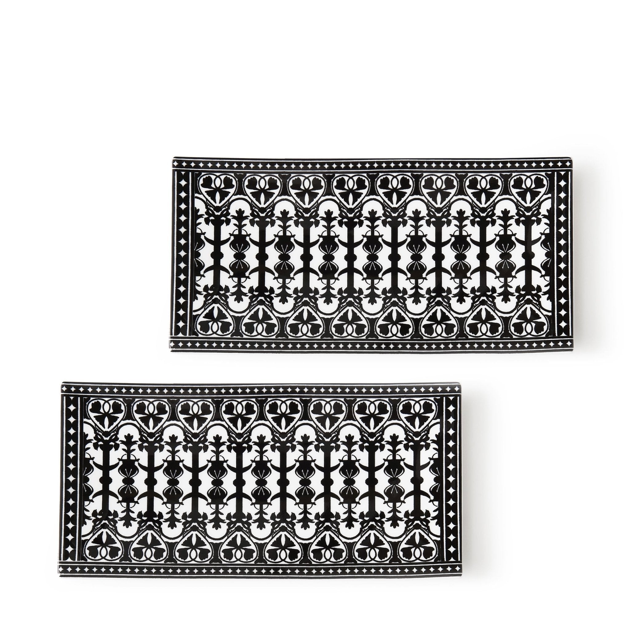 Elevate your sushi night with this set of 2 Casablanca Medium Sushi Trays, featuring a striking black and white Moroccan trellis design. Crafted from premium bone china, these rectangular plates offer a refined and durable surface perfect for serving sushi rolls, sashimi, appetizers, or small desserts. Their versatile size and bold geometric pattern make them a sophisticated addition to any modern table setting.