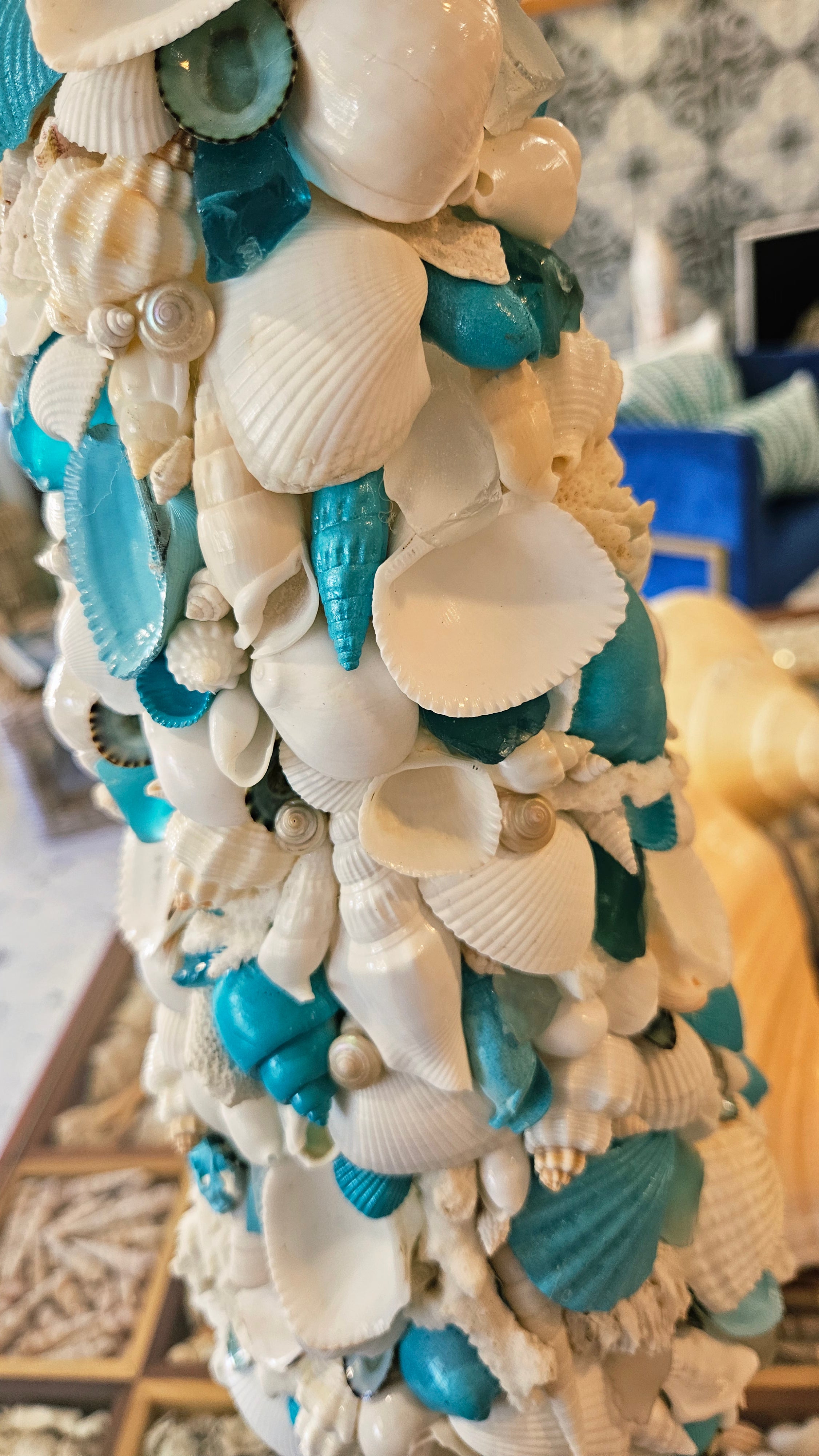 Vibrant Turquoise & White Seashell Tree - 31.75" Tall