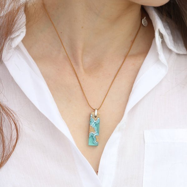 Islands Necklace – Aqua & Ultramarine Resin Rectangle Pendant