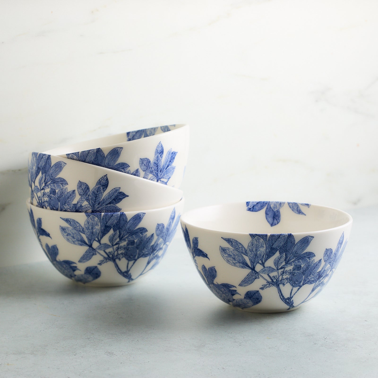 Start your day with the Arbor Cereal Bowl, featuring a serene blue botanical design on white porcelain. This versatile 6-inch deep bowl is perfectly sized for oatmeal, soup, or ice cream, blending everyday functionality with coastal elegance.
