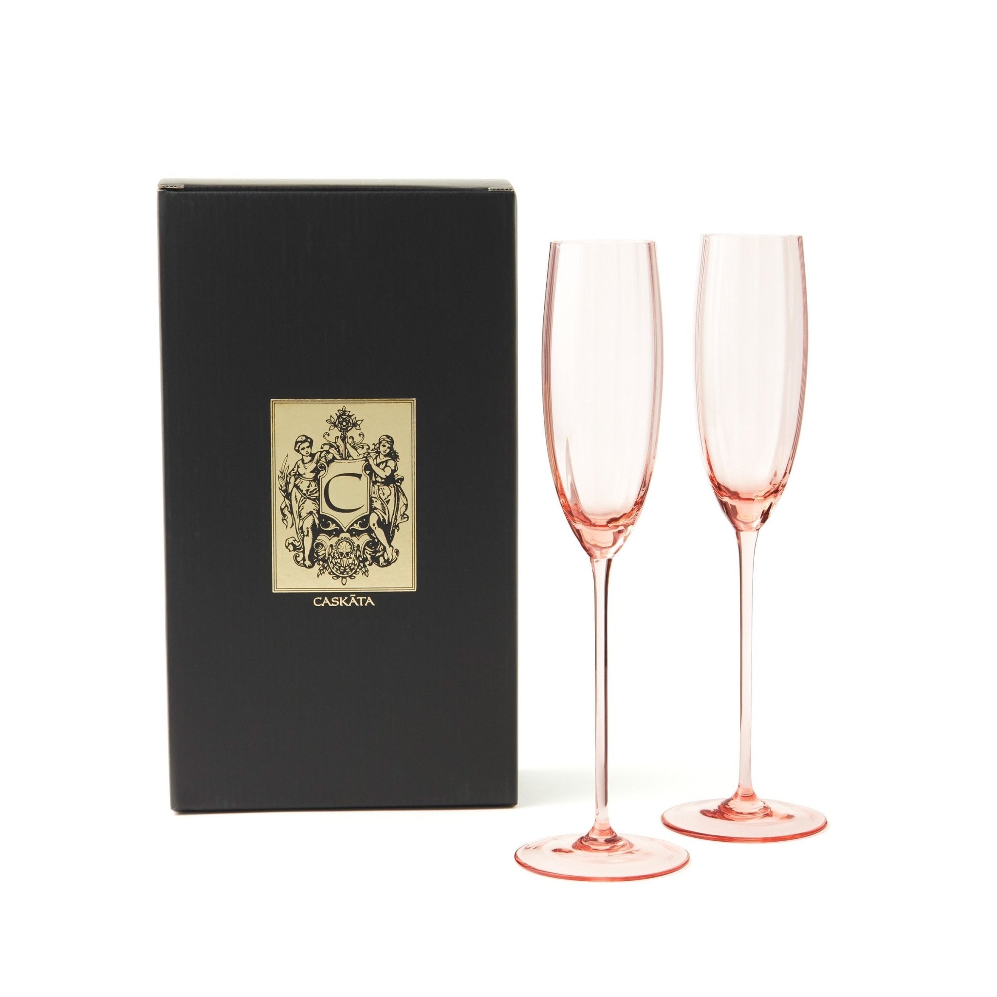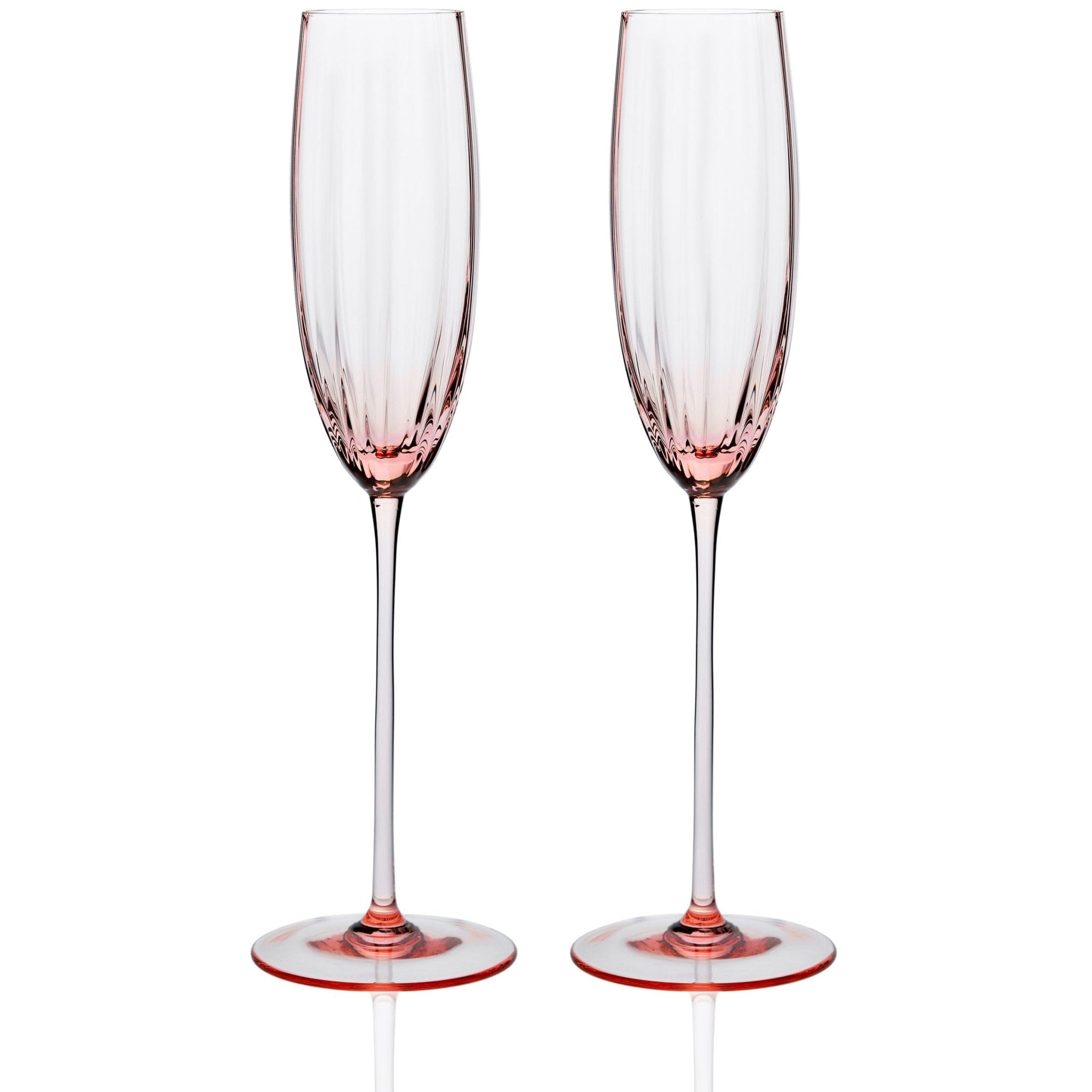 Quinn Champagne Flutes, Set of 2 –Blown Crystal (Rose)