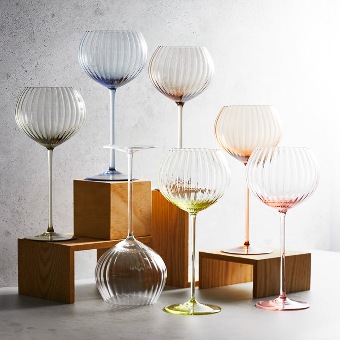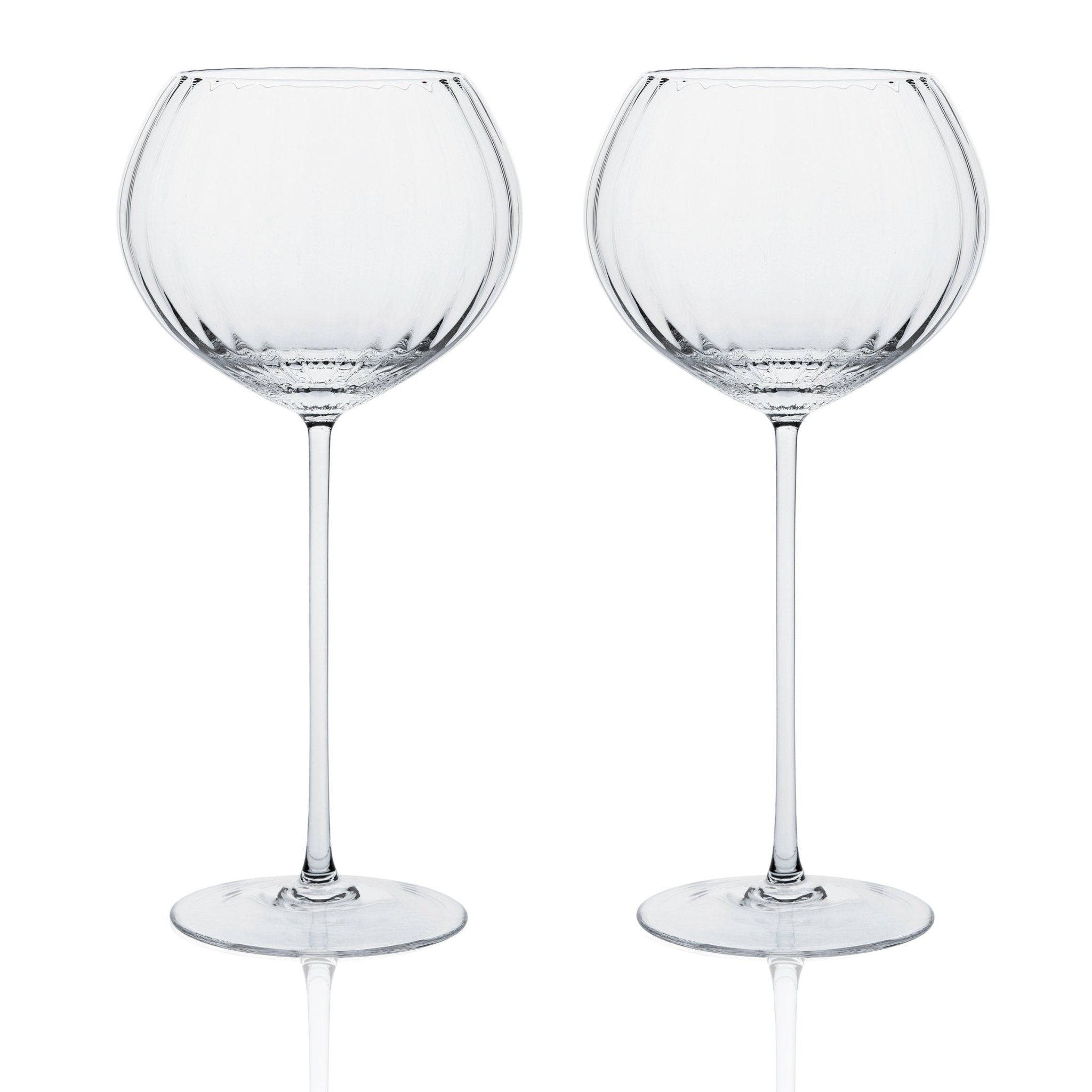 Enhance the bouquet of your favorite vintages with the Quinn Red Wine Glasses, designed with a voluminous balloon bowl to perfectly aerate bold reds like Pinot Noir and Burgundy. Crafted from mouth-blown crystal with a stunning optic swirl texture, these oversized stems blend sommelier-level performance with vibrant, modern luxury.