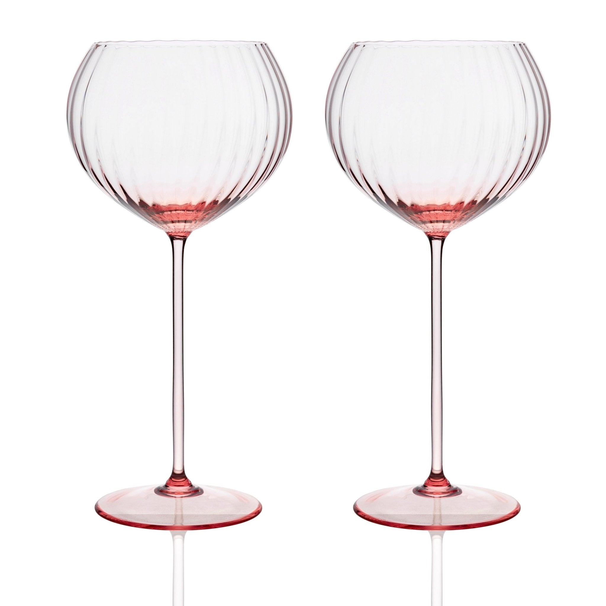 Quinn Red Wine Glasses, Set of 2 – Mouth-Blown Optic Crystal ( Ocean, Citrine, Clear, Amber, and Rose)