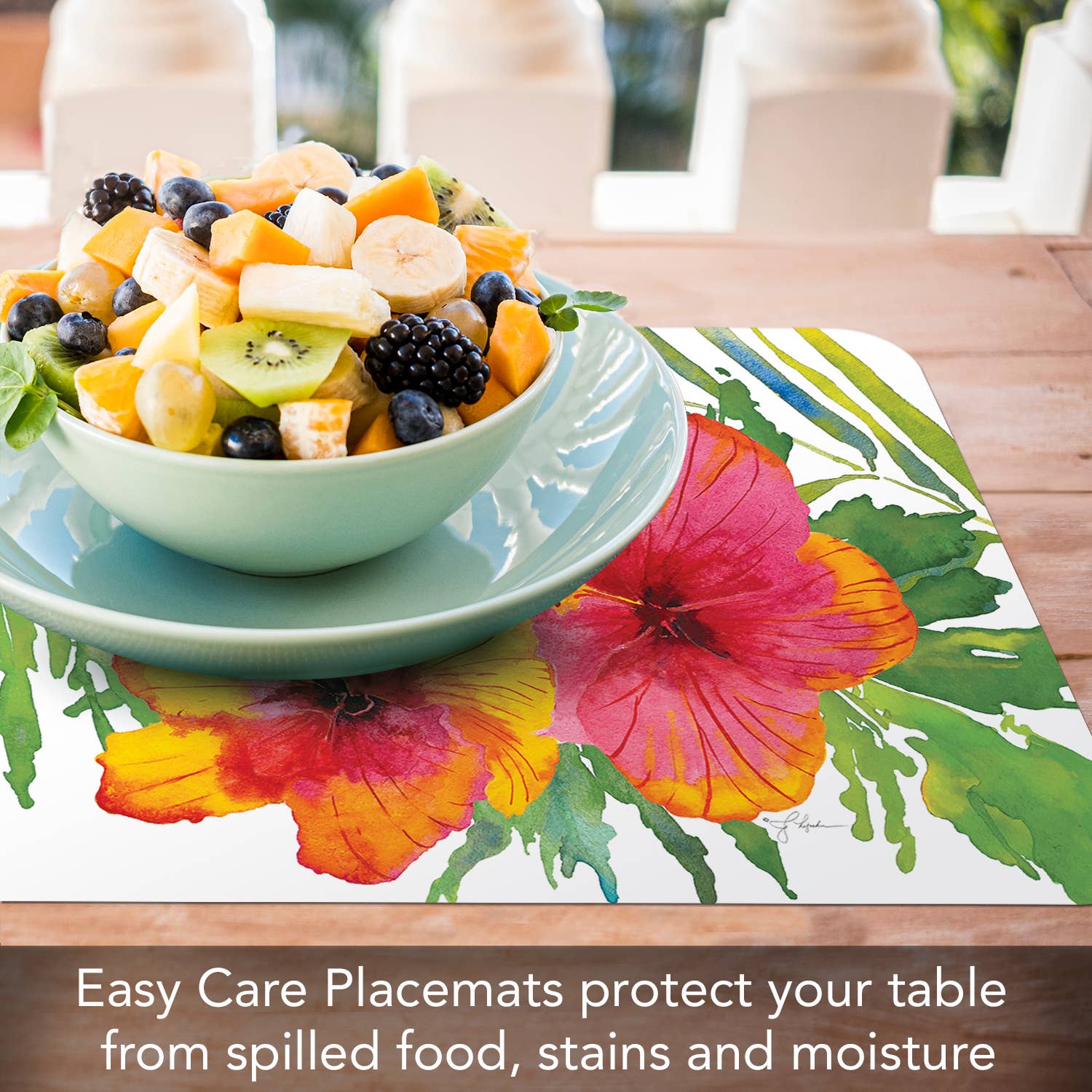 Brighten your table with the Tropical Paradise Reversible Placemat. One side features vibrant hibiscus blooms, and the other showcases a striking bird of paradise design — perfect for adding a lively island touch to any meal.