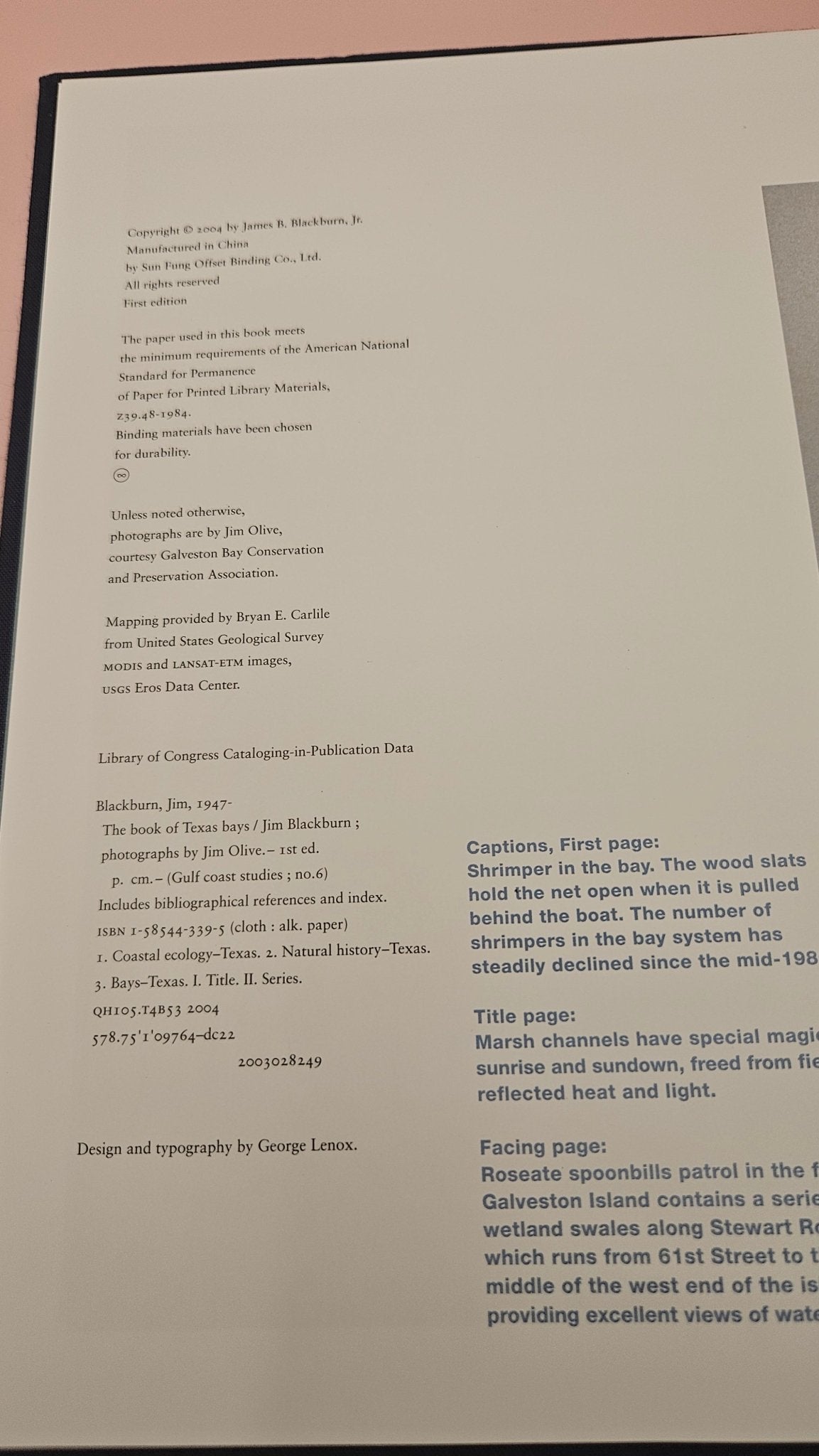 The Book of Texas Bays by Jim Blackburn - Texas A&M University Press - Vintage Coastal Ecology Book