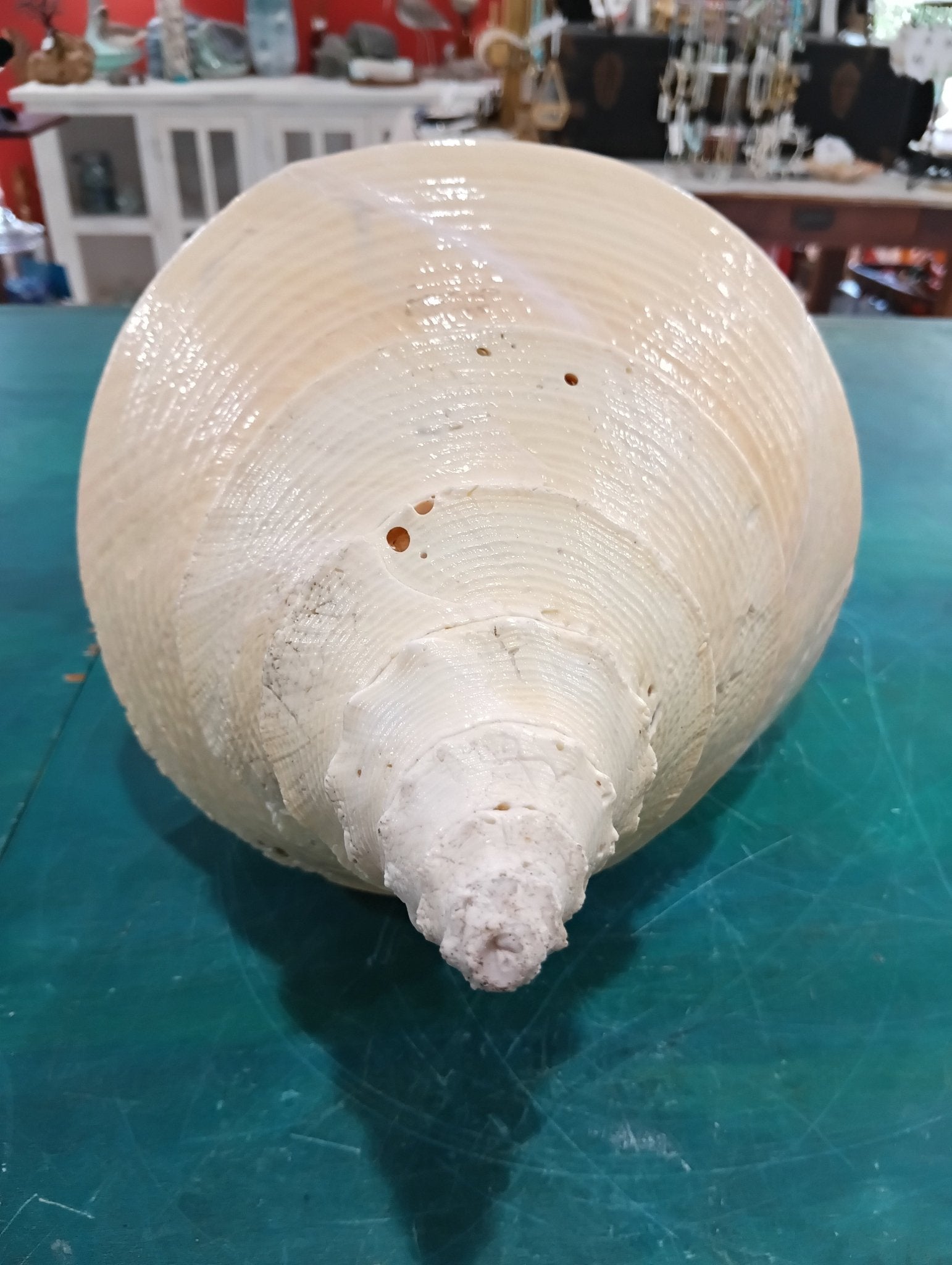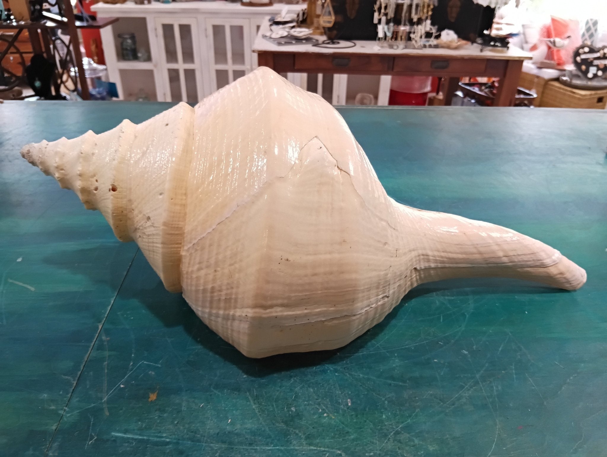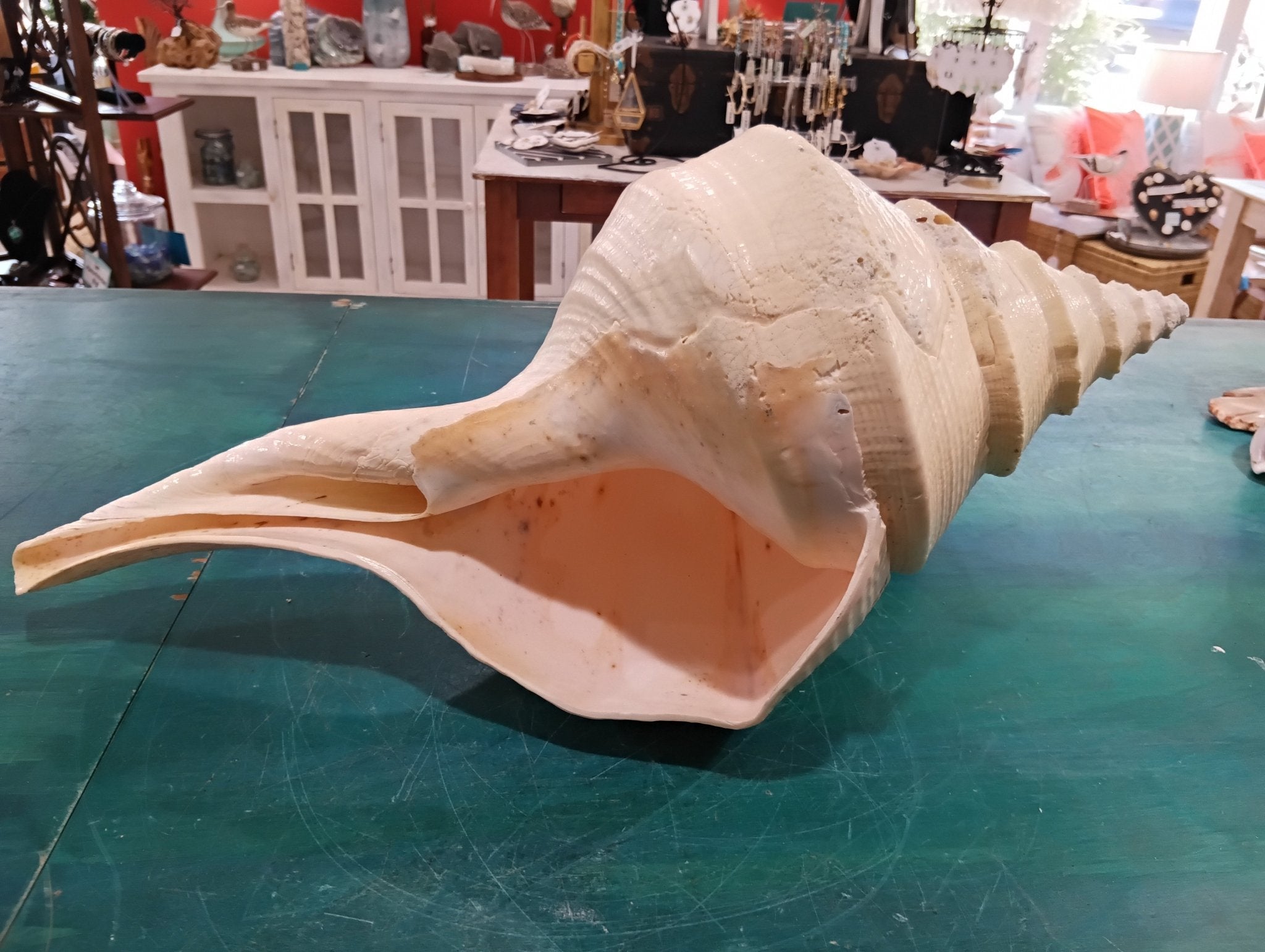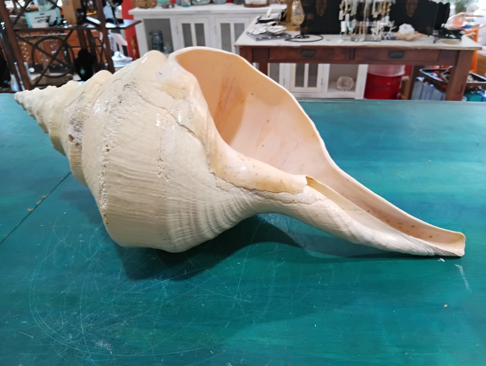 Bring a touch of natural ocean beauty to your space with this stunning Large Australian Trumpet Shell. With its iconic spiral shape and warm peachy interior, this shell makes a bold and elegant statement as a centerpiece, shelf accent, or coastal décor item.