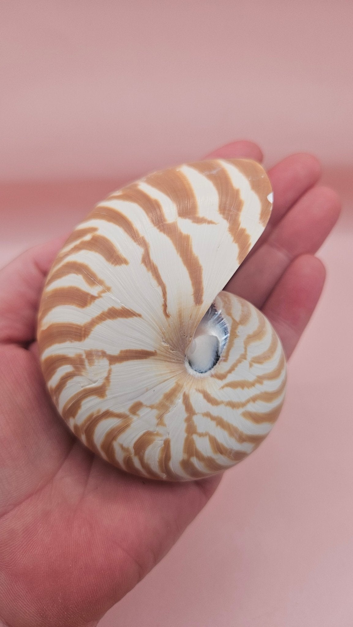 - Authentic Tiger Nautilus Shell – Naturally formed with eye-catching tiger stripe patterns