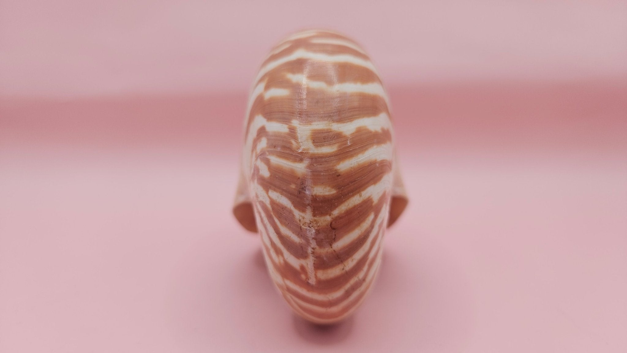 Add a touch of marine elegance to your space with this stunning Tiger Nautilus Shell. Featuring a smooth surface with distinct brown tiger-like markings, this shell is a beautiful fusion of nature and art. Its bold pattern and classic spiral design make it a perfect accent for coastal, nautical, or modern interiors.