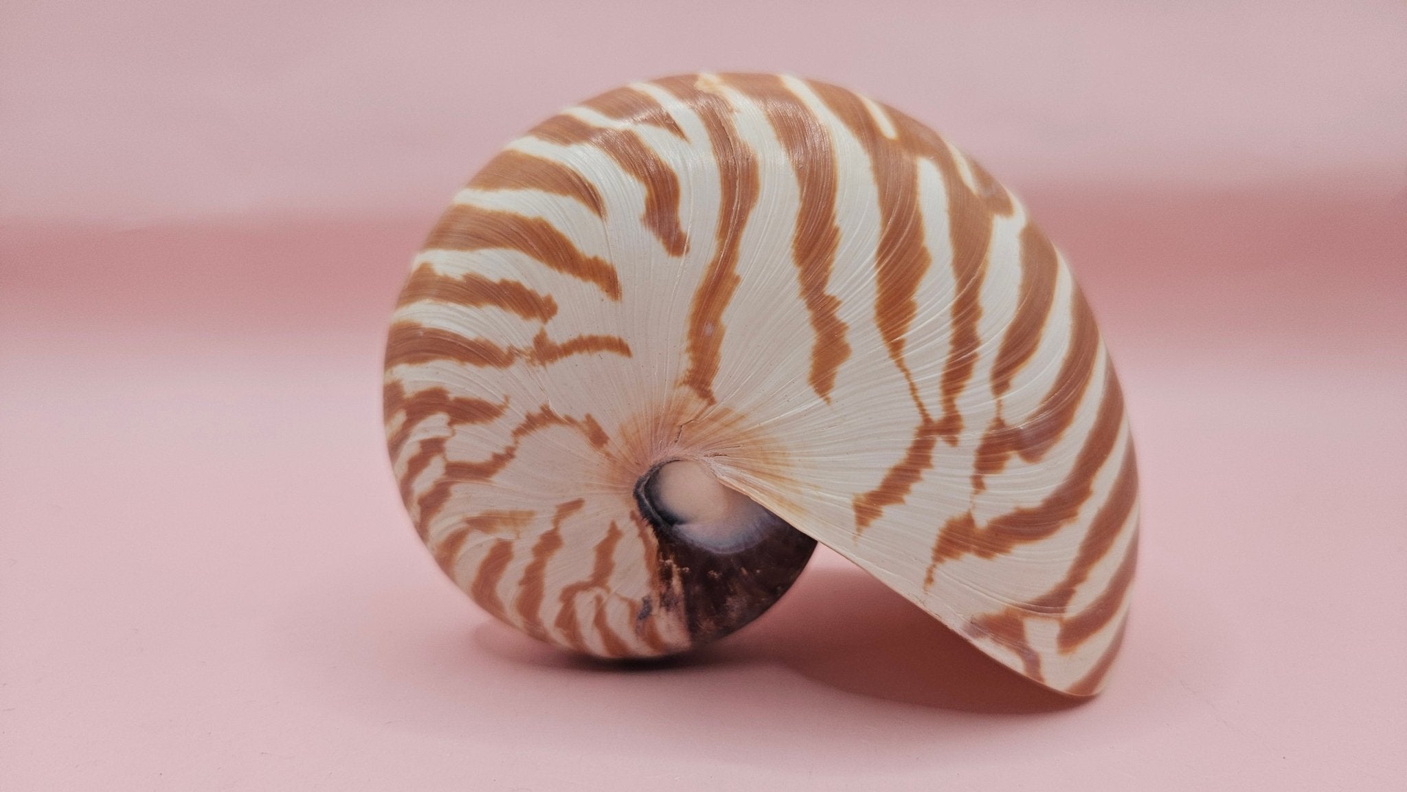- Authentic Tiger Nautilus Shell – Naturally formed with eye-catching tiger stripe patterns
