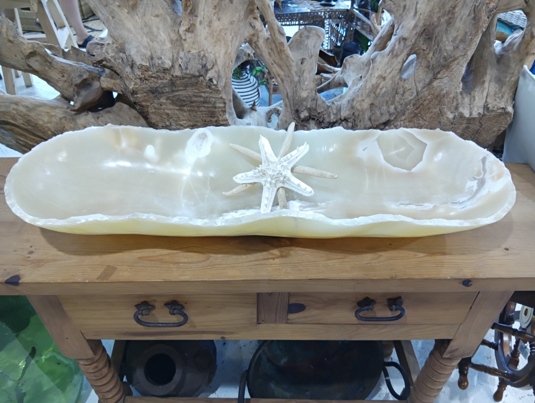 Honey Onyx Decorative Bowl – 34" Long Hand-Carved Centerpiece