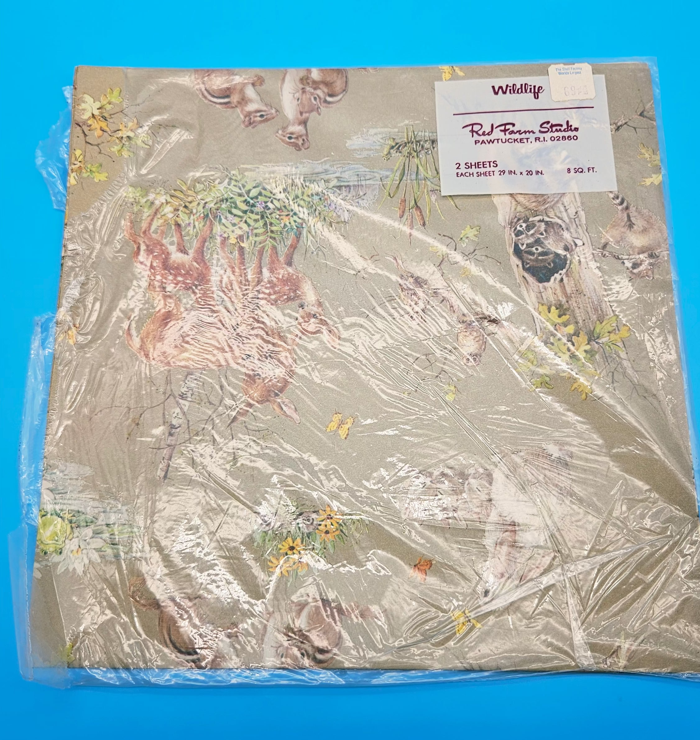 Vintage Red Farm Studio Gift Wrap - Single Sheet (Open) - Wildlife & Woodland Animals (Deer, Raccoons) - 1970s