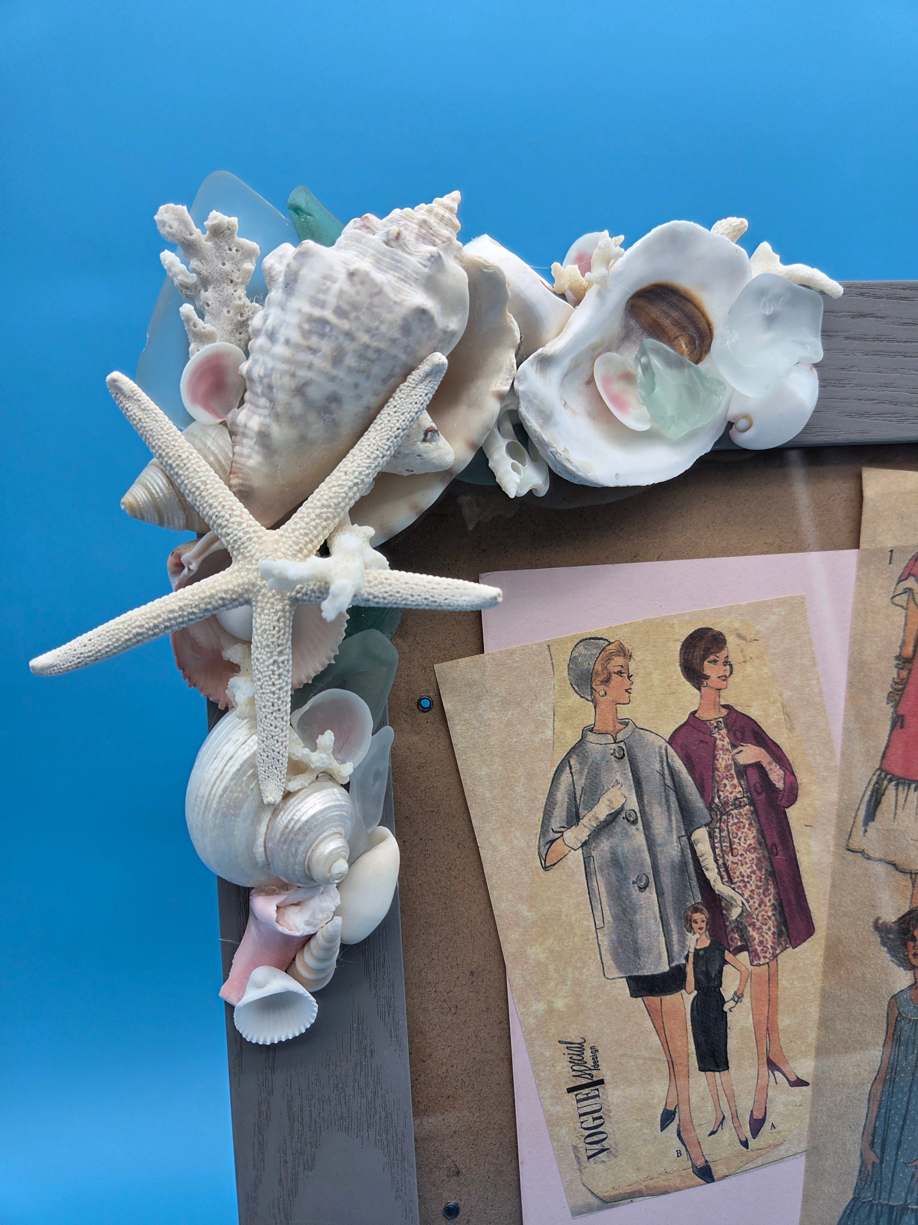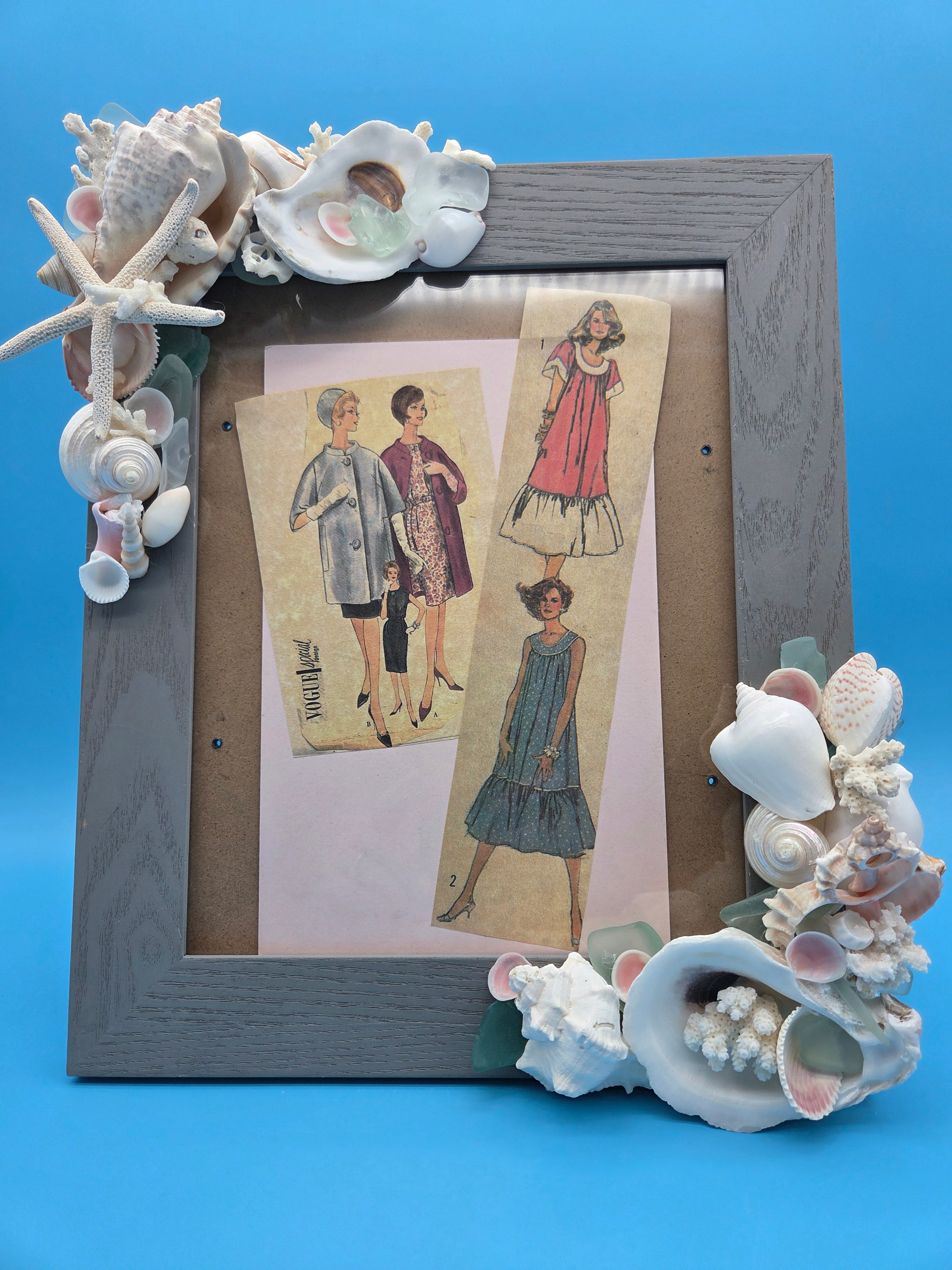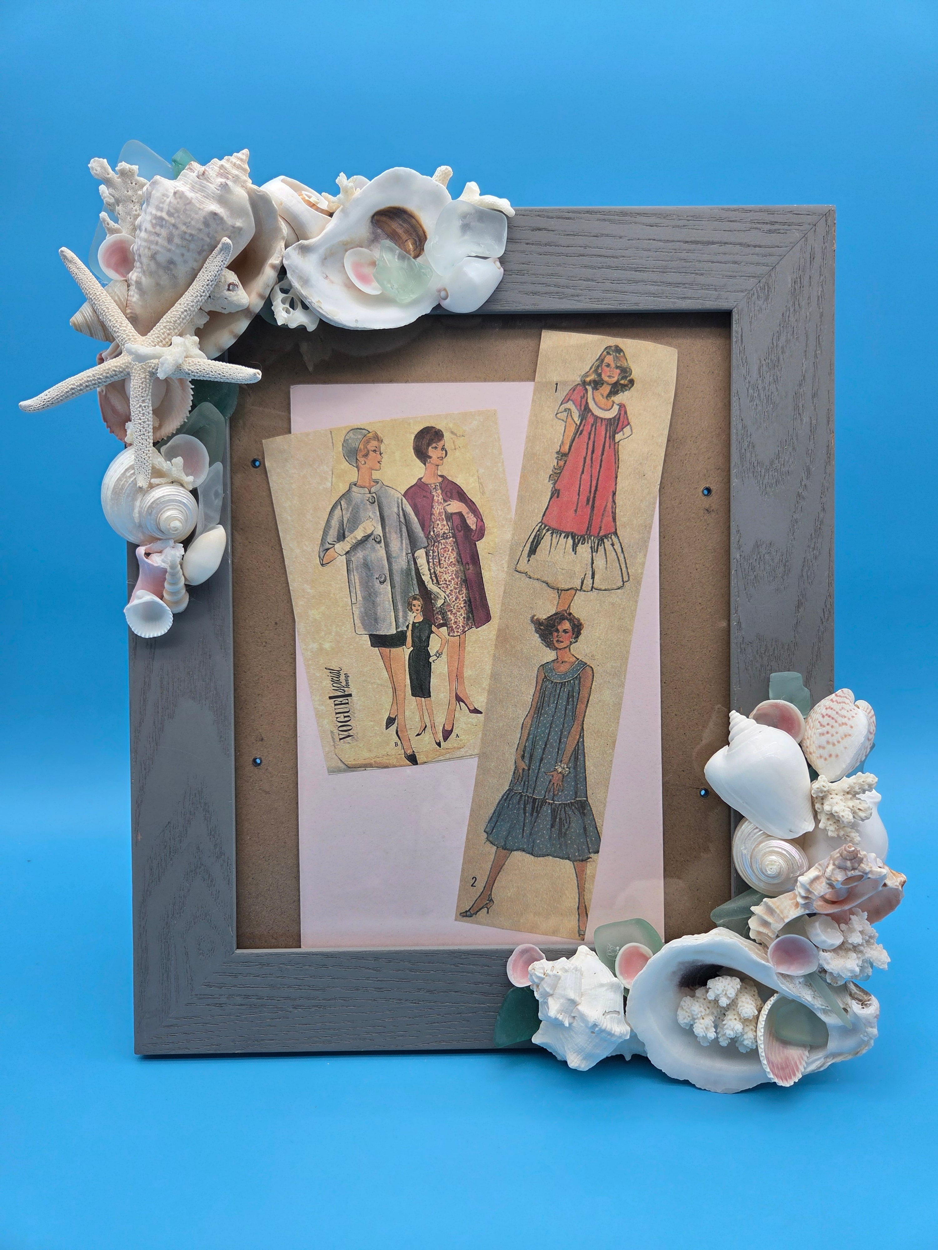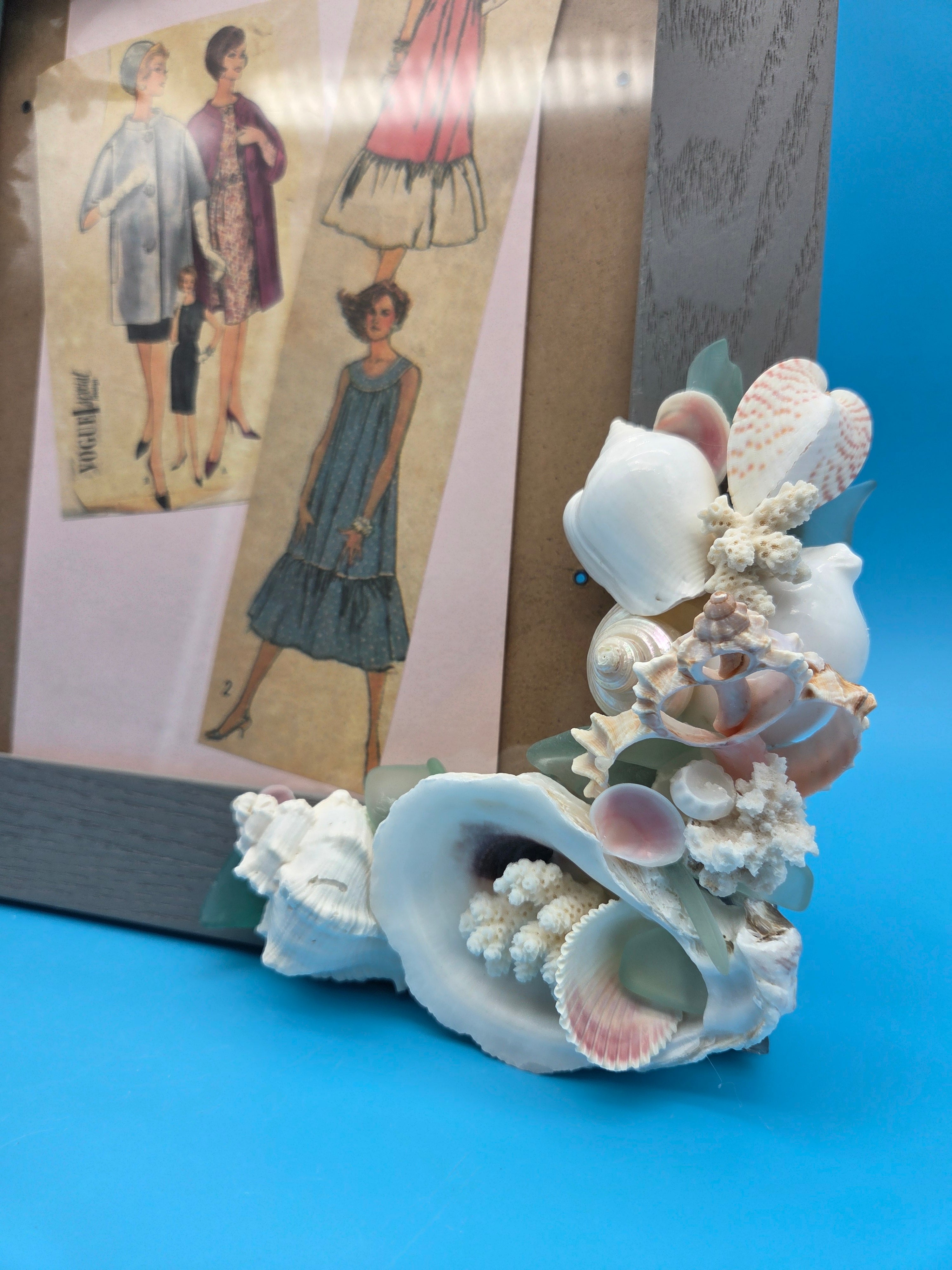 Seaglass & Seashell picture frame- Grey, White, Pink & Seafoam Green Tones 8x10