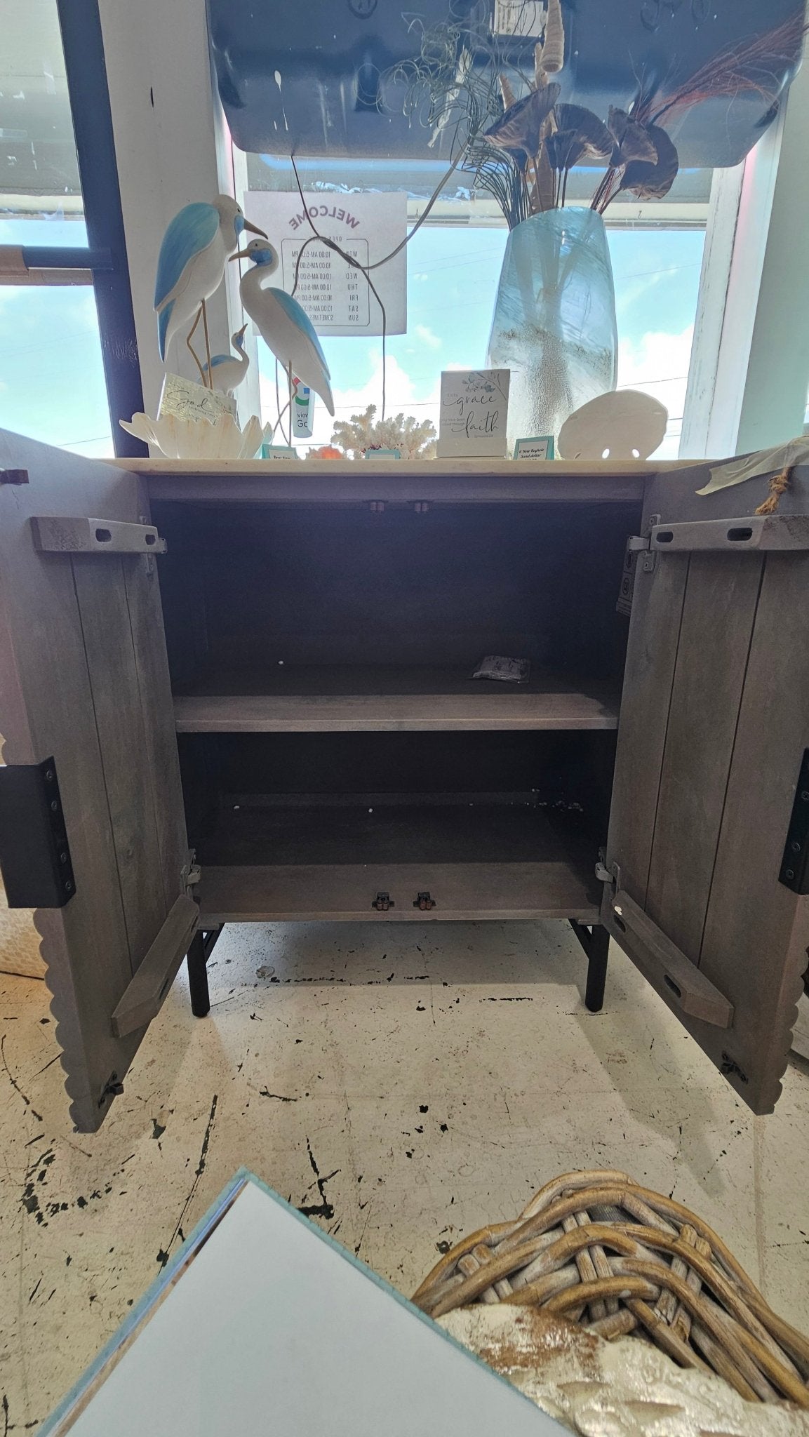 Elevate your space with this Grey Wood Grain Chevron Cabinet, topped with a luxurious marble slab. The textured chevron pattern on the grey wood grain doors brings depth and style, while the genuine marble top adds an upscale touch. Perfect for storing essentials or displaying décor, this versatile piece works beautifully in entryways, living rooms, bedrooms, or offices.