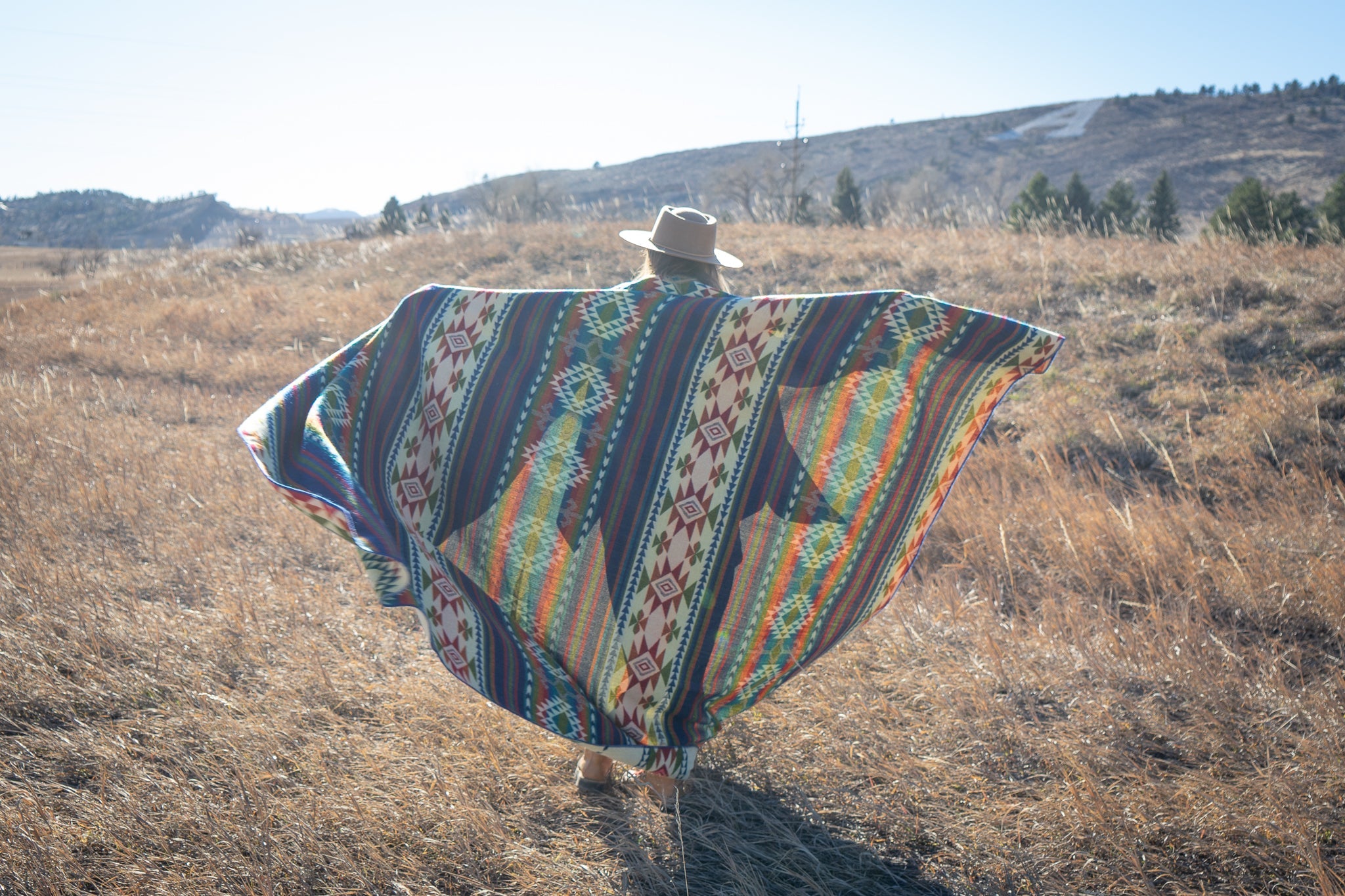 Andean Alpaca Wool Blanket - Galapagos (Vibrant & Reversible Queen Size)
