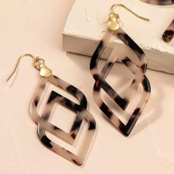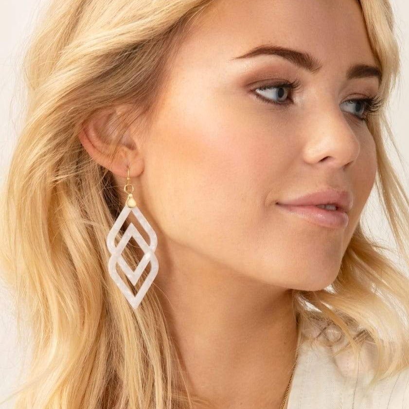 Deco Drama Earrings - White Tortoise or White Shimmer