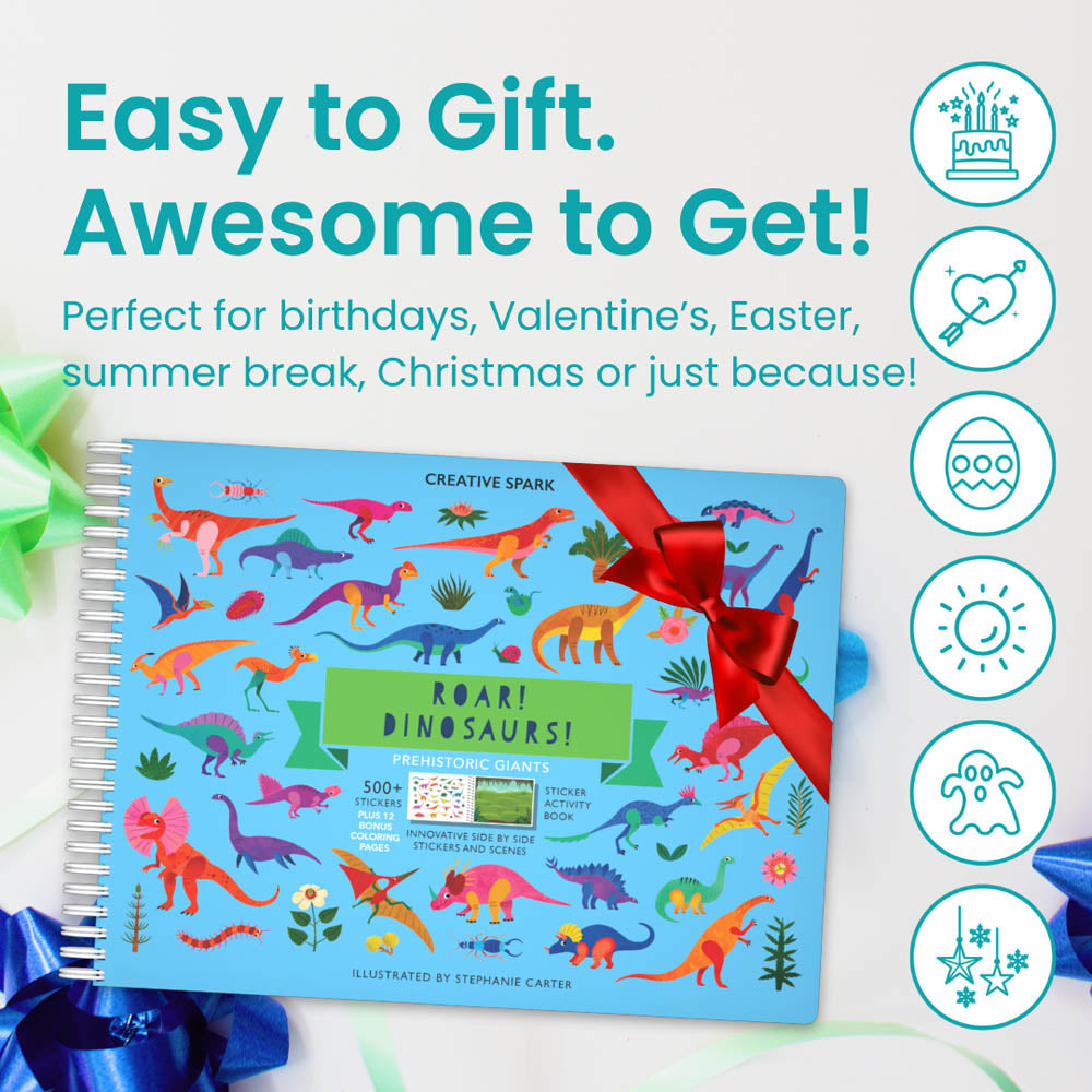 Step back in time and explore the prehistoric world with 500+ dino-mite stickers! From towering T-Rexes and soaring Pterodactyls to spiky Stegosauruses and gentle Brachiosauruses, this sticker book is a Jurassic dream come true. Perfect for decorating journals, creating wild dino scenes, or adding a roar of excitement to any craft project!