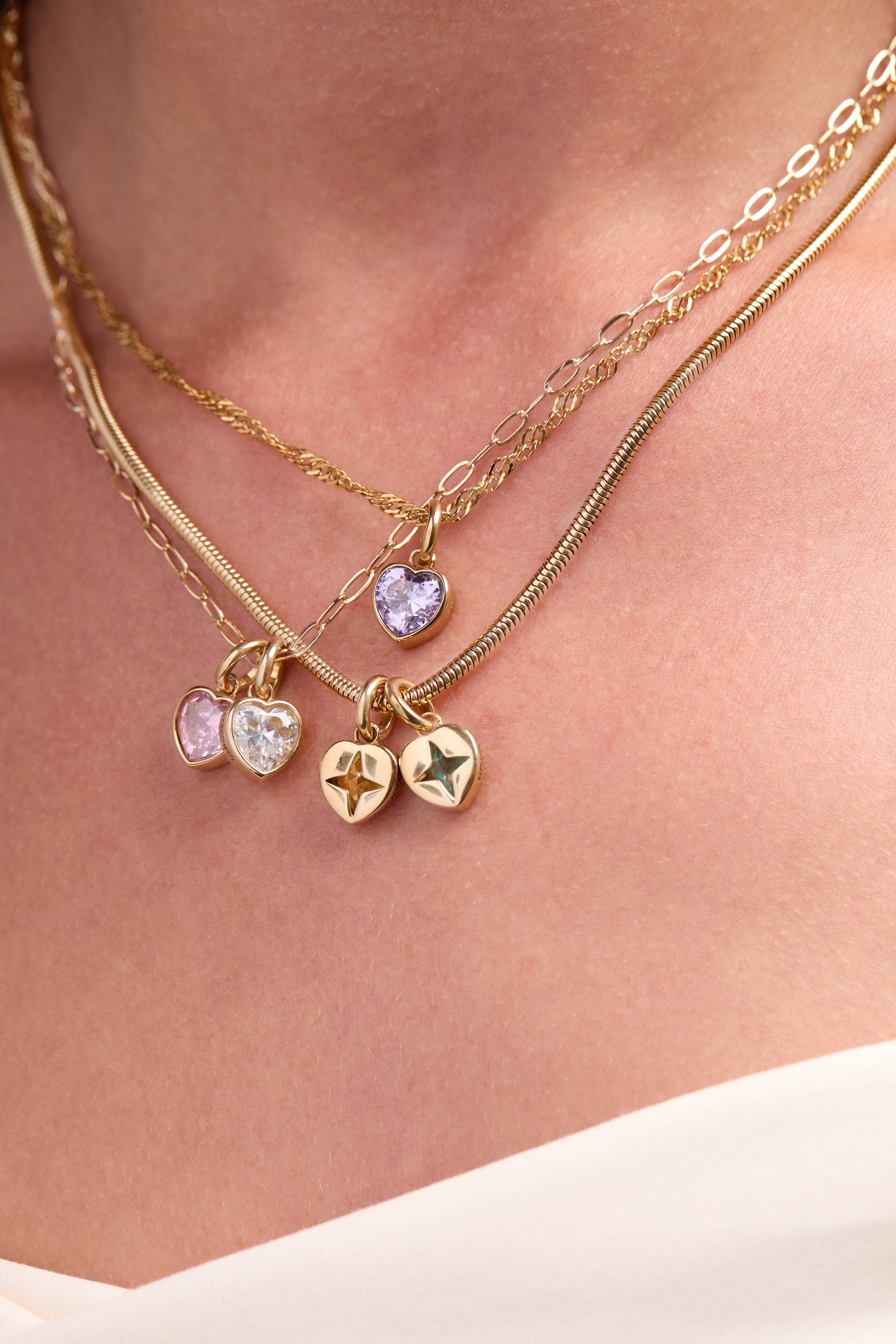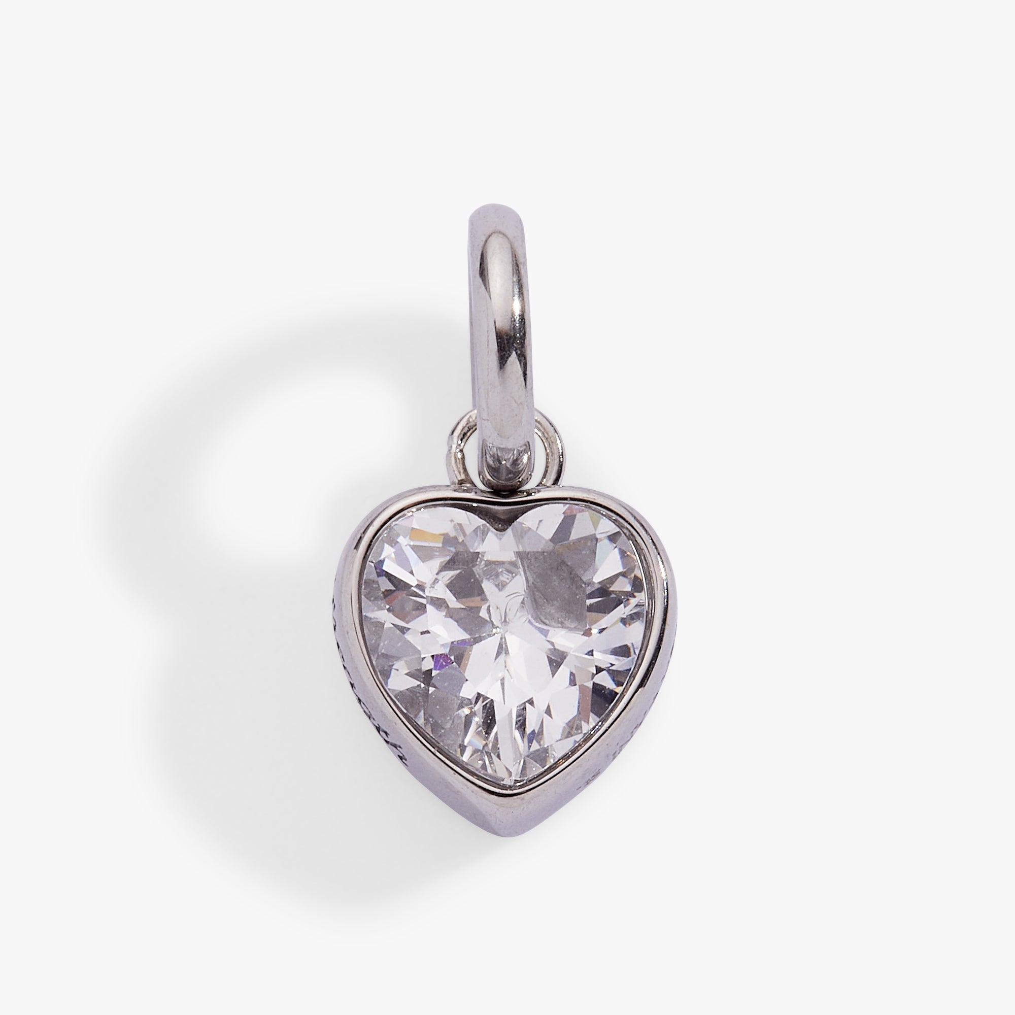 This sparkling faceted heart-shaped clear crystal cz stone celebrates April’s birthstone, set in a bezel with a star-shaped logo cutout on the back. The word Strength is etched on the side, making it a fun and meaningful way to add personality and a splash of color to your bracelet or necklace stack.