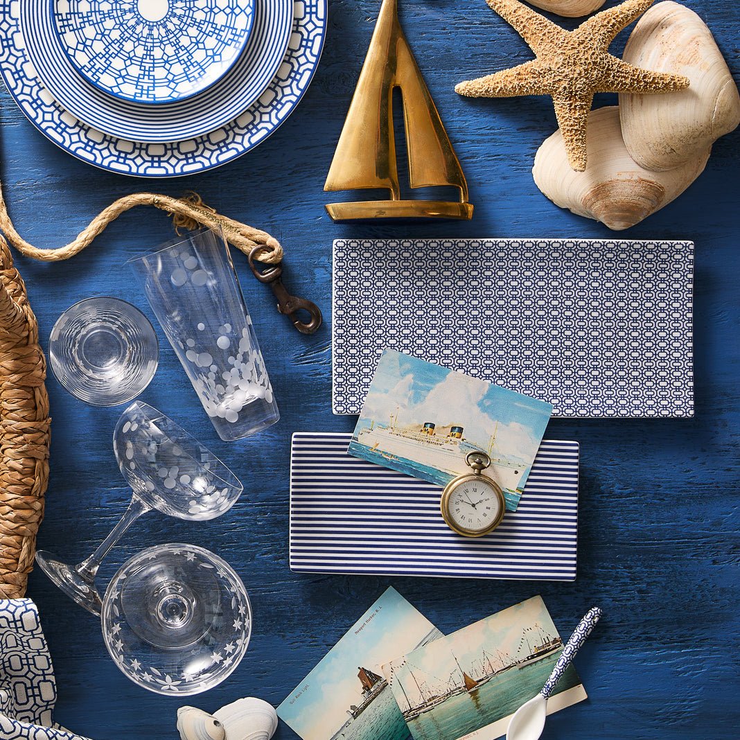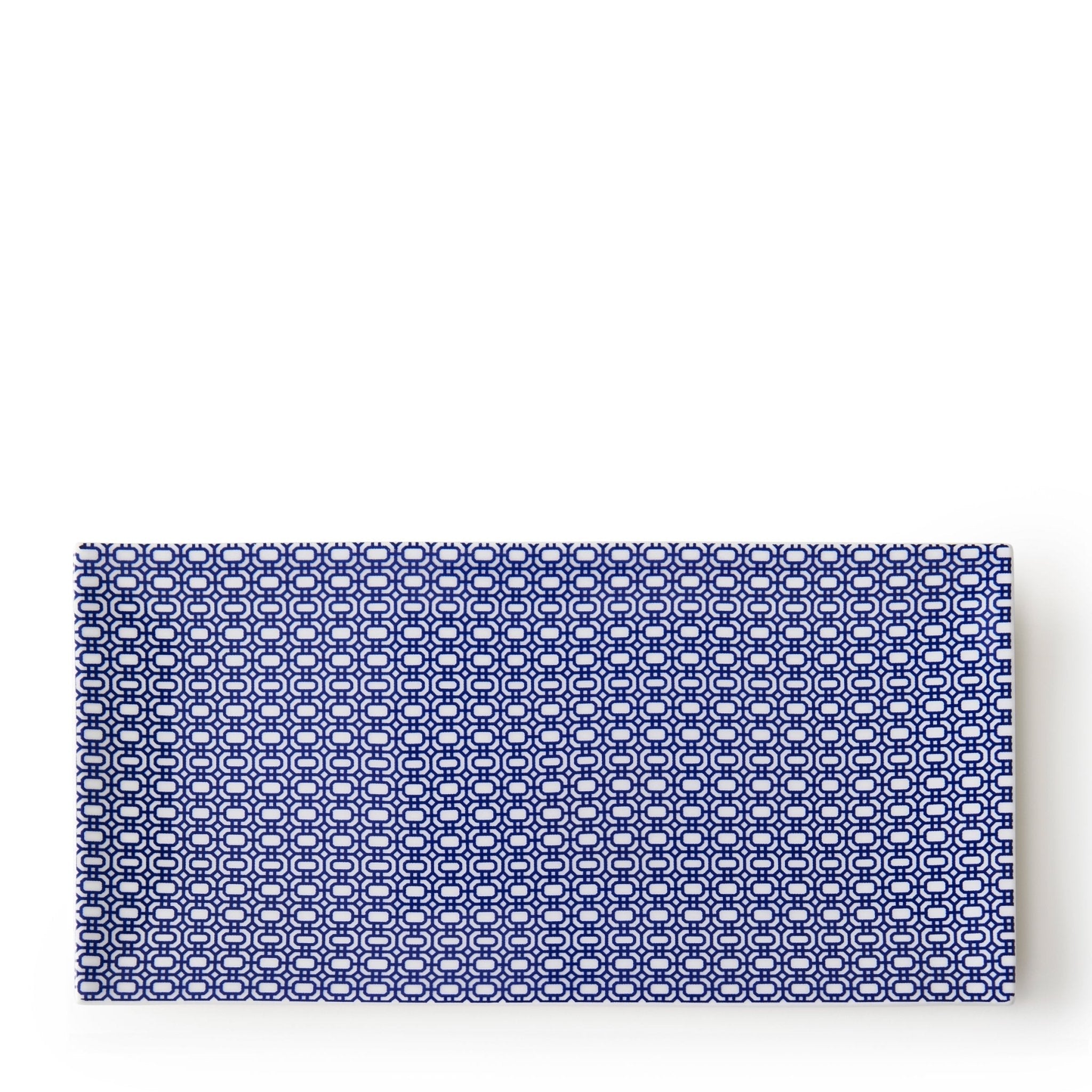 Serve your guests in elegant coastal style with the Newport Large Sushi Tray. Crafted from delicate yet durable bone china, this versatile rectangular platter features an intricate blue and white geometric pattern. While designed perfectly for sushi rolls and sashimi, its 11-inch length makes it an ideal serving dish for appetizers, bruschetta, or desserts at your next dinner party.