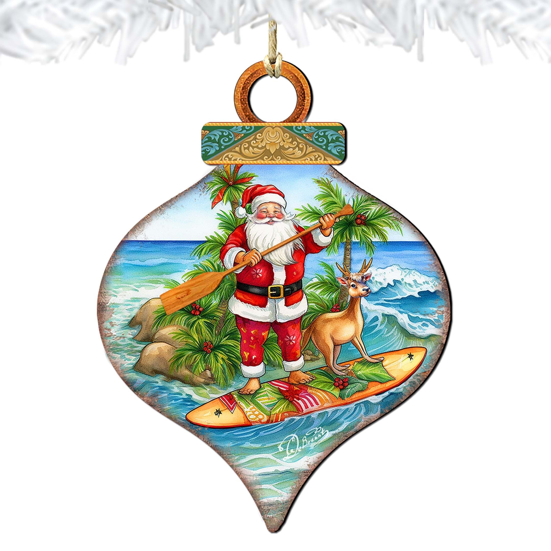 Beach Themed Ornaments - Santa's Surf Wooden Ornaments by G.Debrekht Coastal Holiday Decor - 8688187