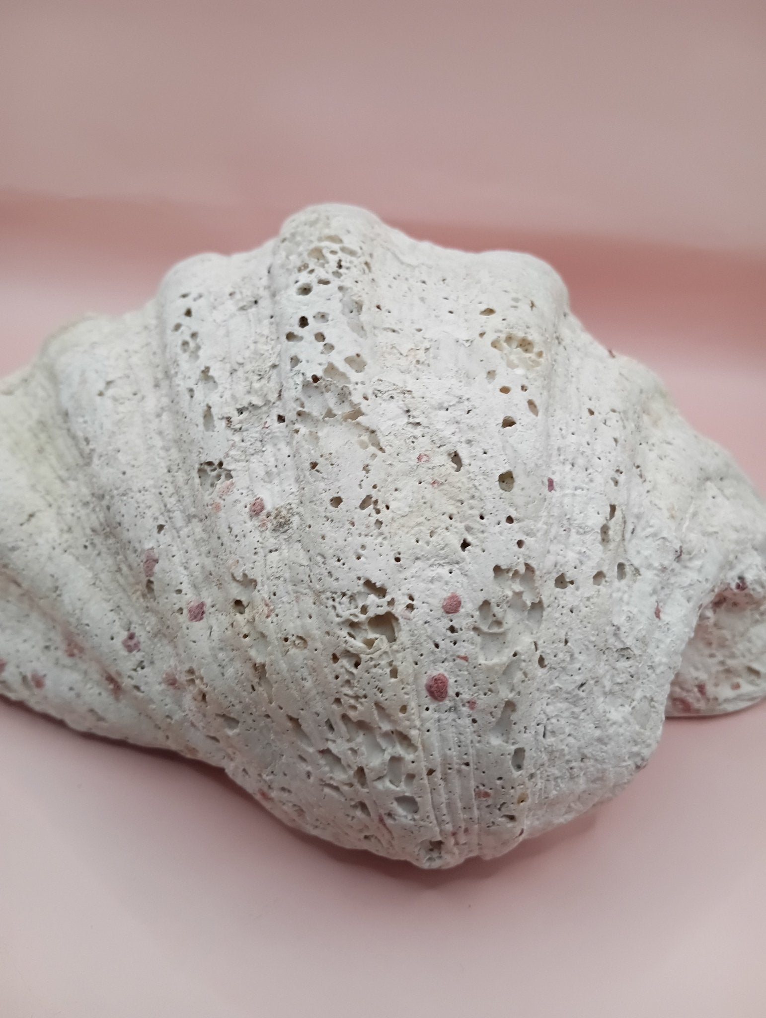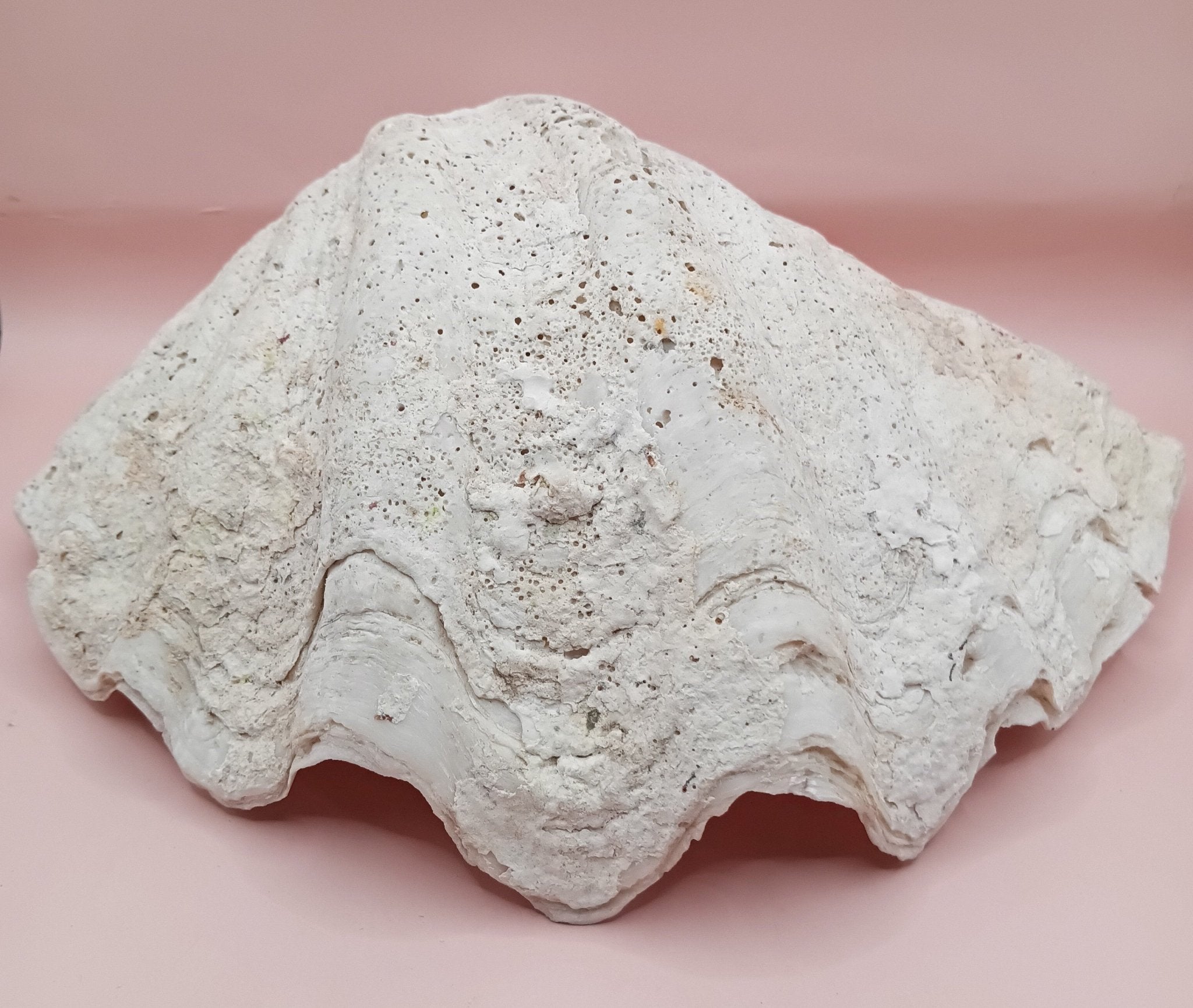 Bring bold, coastal elegance into your home with this stunning Giant Clam Shell Half. Measuring an impressive 11.7 inches long, this natural shell features gently curved ridges, a beautiful creamy white tone, and natural marine texture along the back. Its impressive size and natural form make it ideal as a centerpiece bowl, coastal catchall, or organic statement accent in beach house decor.