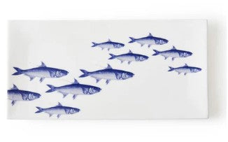 School of Fish Blue & White Porcelain Large Sushi Tray