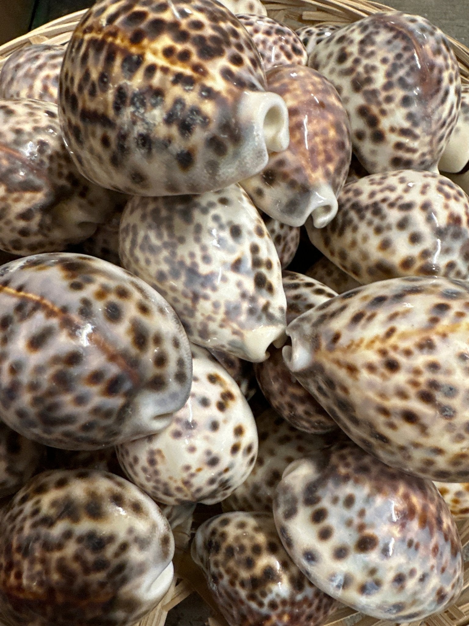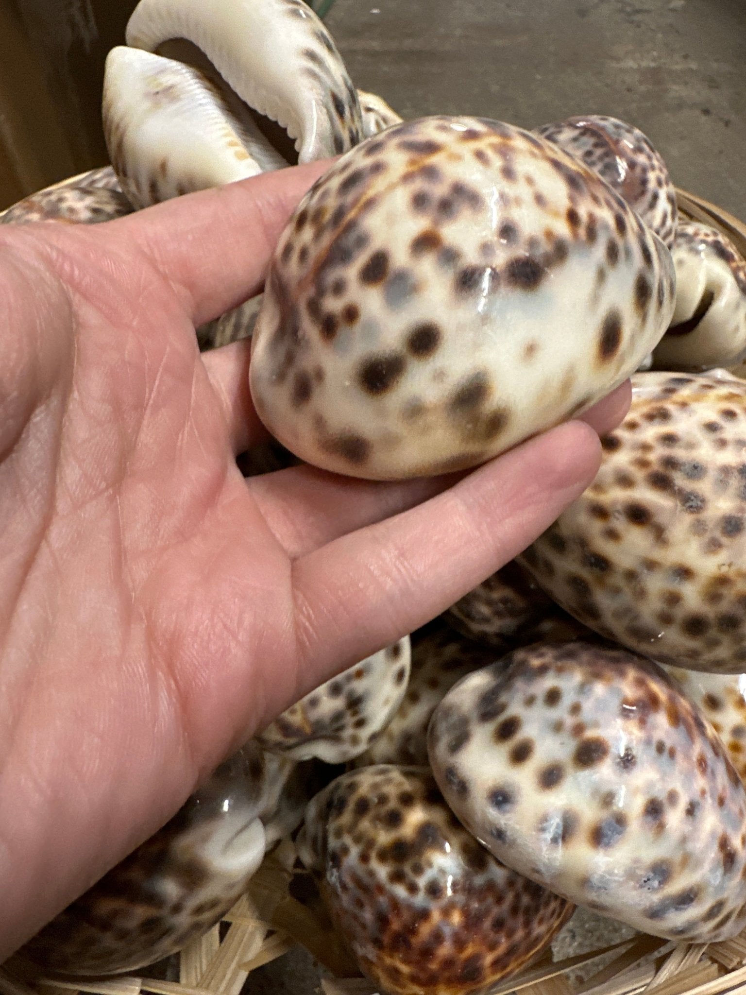Beautiful (naturally smooth by sea, some will have slight calcium buildup) tiger cowrie shells are perfect for crafting or decorating! The shells measure approximately 3"+ inches in length. These rich chocolate toned shells are perfect to use for creating mirrors, wreaths & floral arrangements. They make lovely accents at weddings.