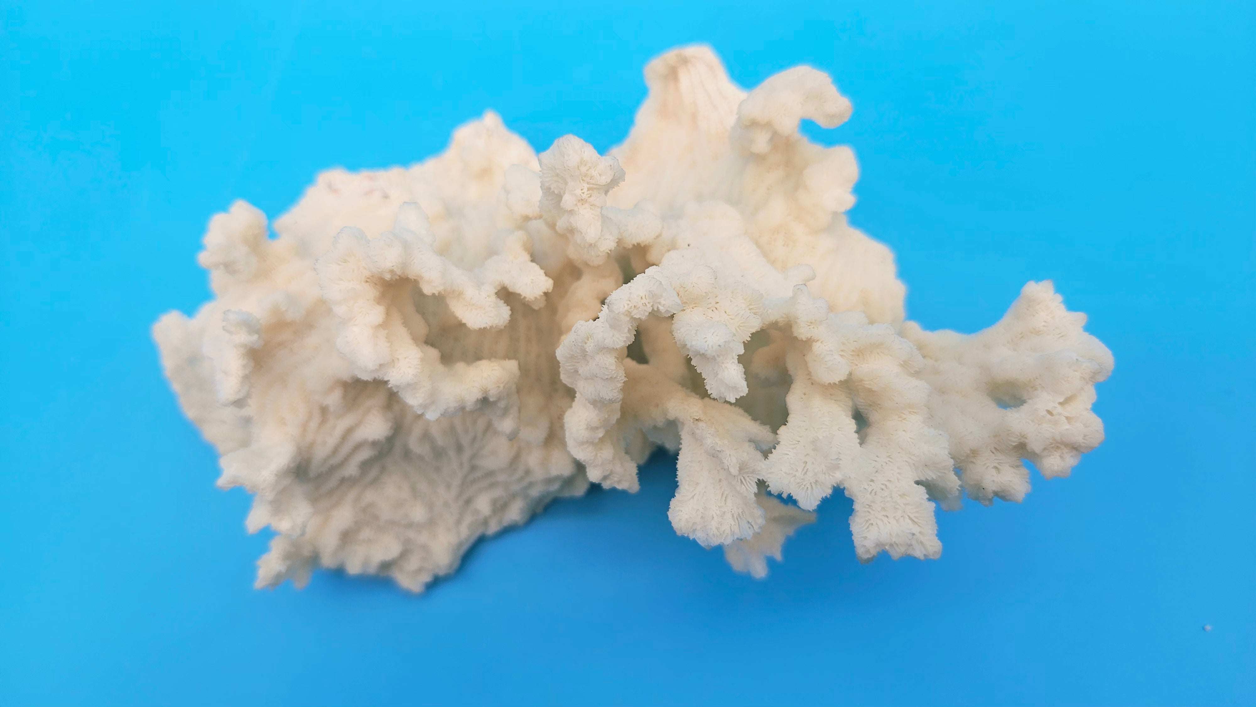 The White Merulina Coral Specimen brings a delicate, flowing elegance to your collection with its distinctive "ruffled" appearance. This authentic natural skeleton showcases intricate fan-like ridges and deep valleys, resembling frozen waves or organic lace, making it a sophisticated textural accent for any interior.
