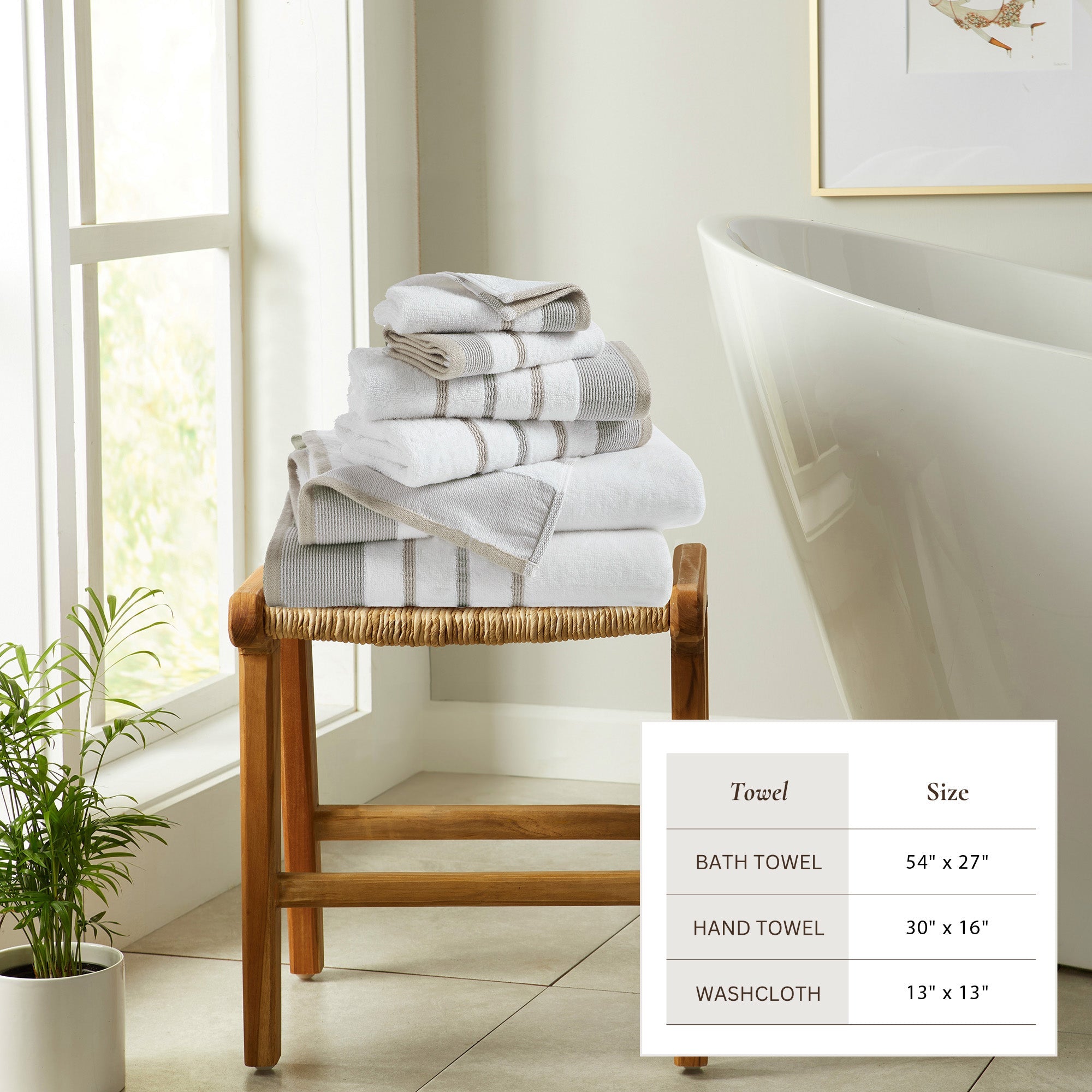 Update your bathroom style with a soft towel that features a decorative stripe detail. These towels are woven with combed cotton, ensuring only the long, durable fibers are left to create absorbent and strong towels. These towels are soft to the touch and will envelop you in a luxurious feel. The polyester decorative stripe is available in many different colors that are sure to compliment your decor with a touch of sophistication.