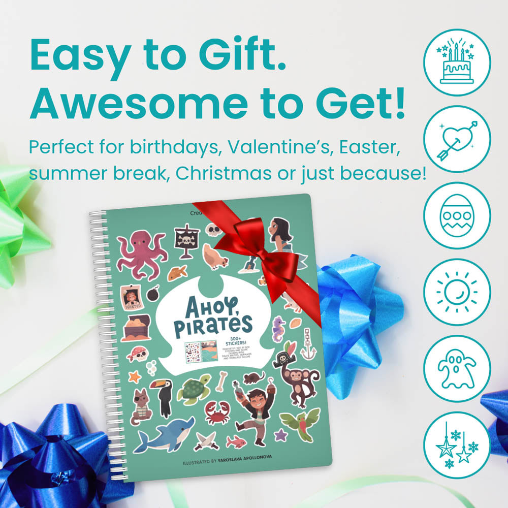 Whether you're mapping out a hidden island or preparing for an epic quest, the Ahoy Pirates Sticker Book lets your imagination sail as far as the horizon.