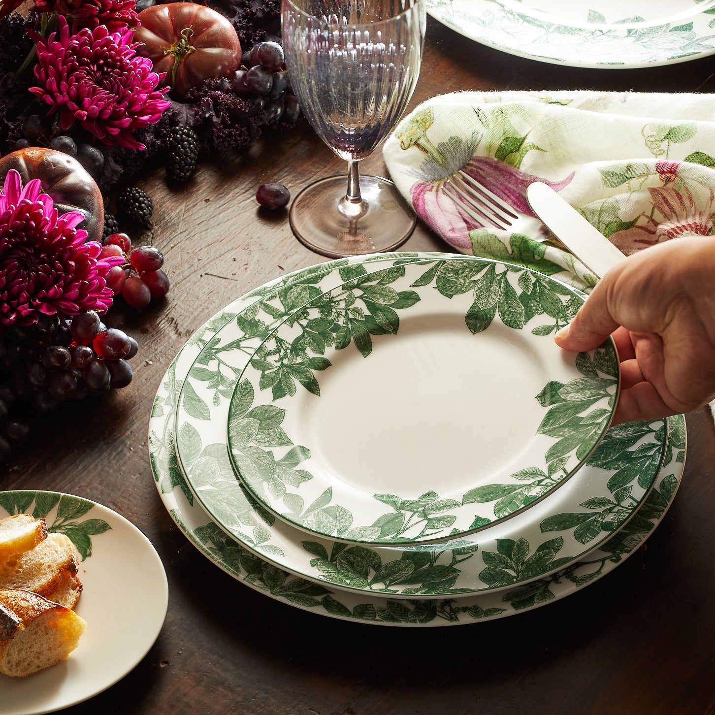 Theme: Botanical, garden-inspired, layered place setting