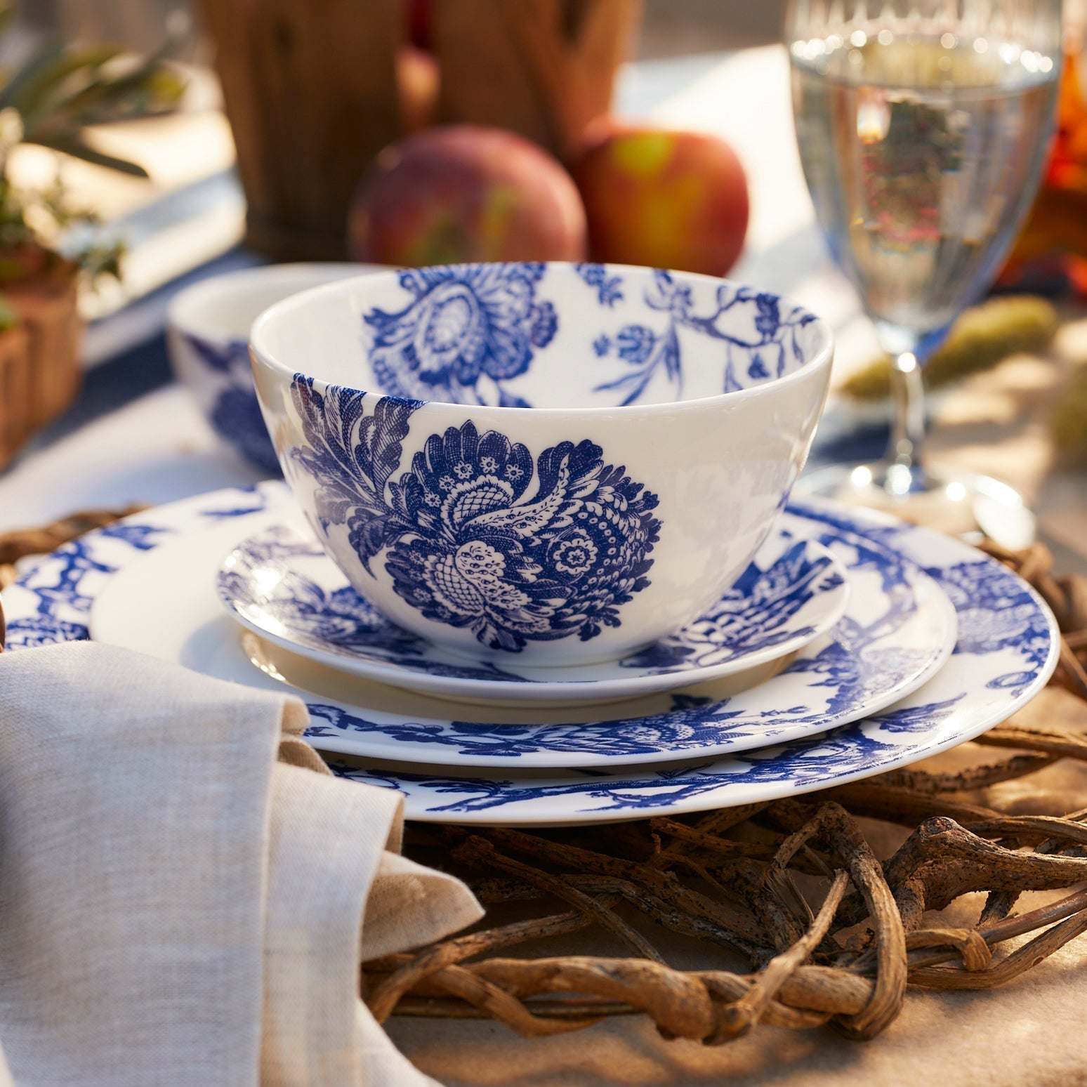 Start your day in style with the Arcadia Cereal Bowl, featuring a timeless floral toile pattern. Crafted from durable, high-fired porcelain, this deep 6-inch bowl is perfectly sized for morning granola, hot soups, or evening desserts. Available in festive red or classic blue to complement your farmhouse or traditional table setting.