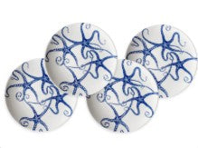 Perfect for bread, appetizers, or desserts, this Blue Starfish Small Plate adds a splash of ocean charm to any setting. Crafted from durable high-fired porcelain, this versatile 6.25" dish features a stunning blue and white coastal motif, making it an essential piece for nautical dining and entertaining.