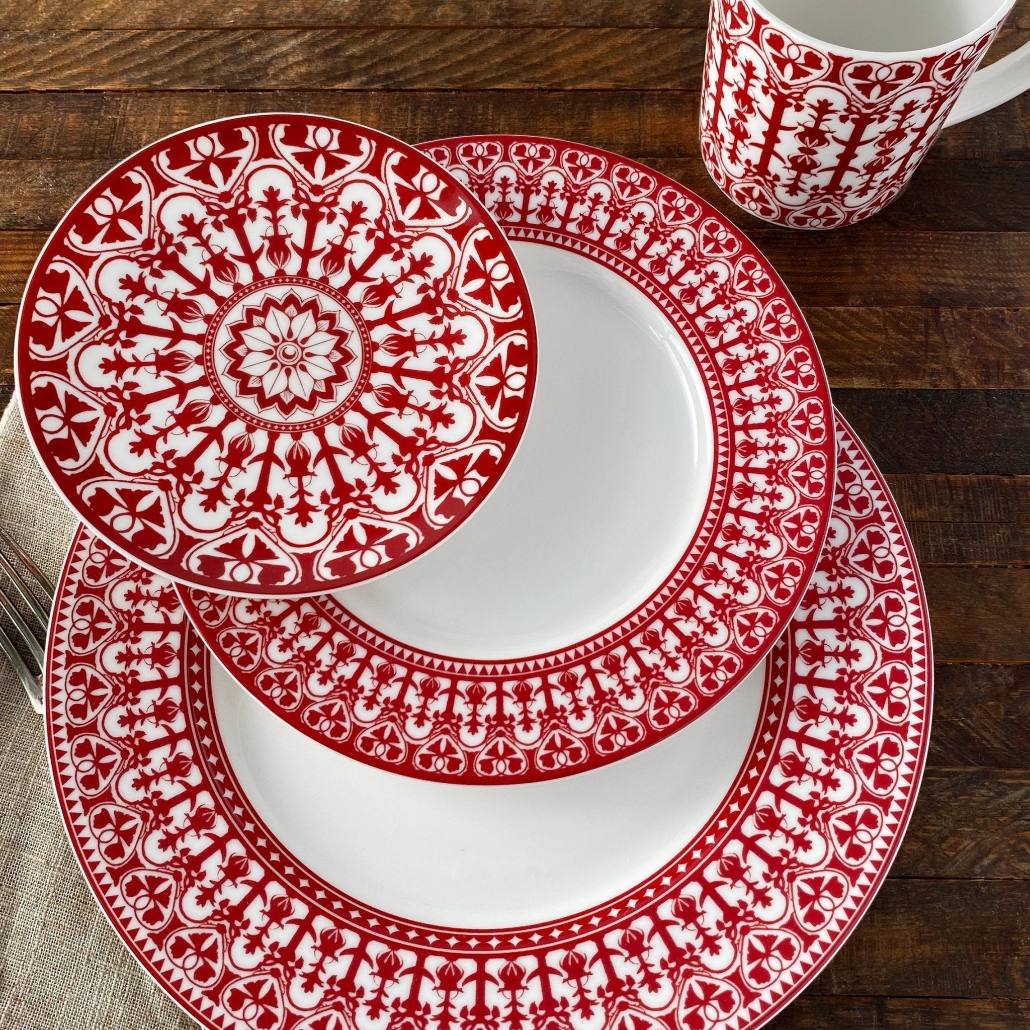 Entertain in global style with this set of 4 Casablanca Small Plates, featuring a stunning full-coverage Moroccan medallion design. Sized perfectly at 6.25 inches, these versatile porcelain appetizer plates are ideal for serving tapas, bread, desserts, or acting as chic coasters, available in vibrant Red or bold Black to accent your table.