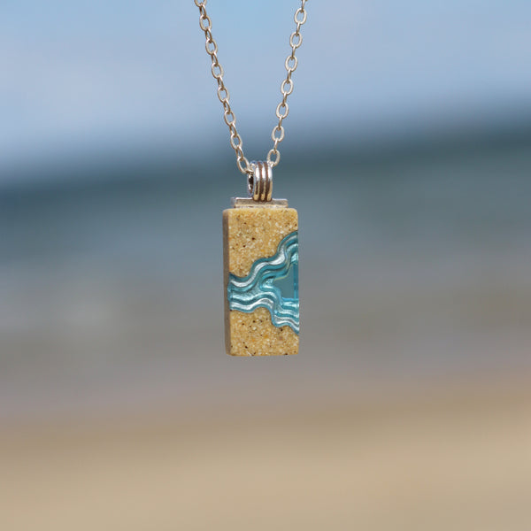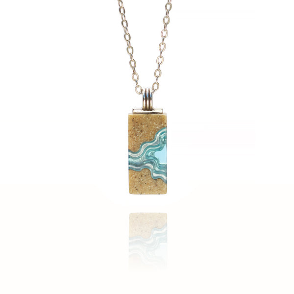Delta Necklace – Blue Resin & Sand Minimalist Rectangle Pendant by BoldB