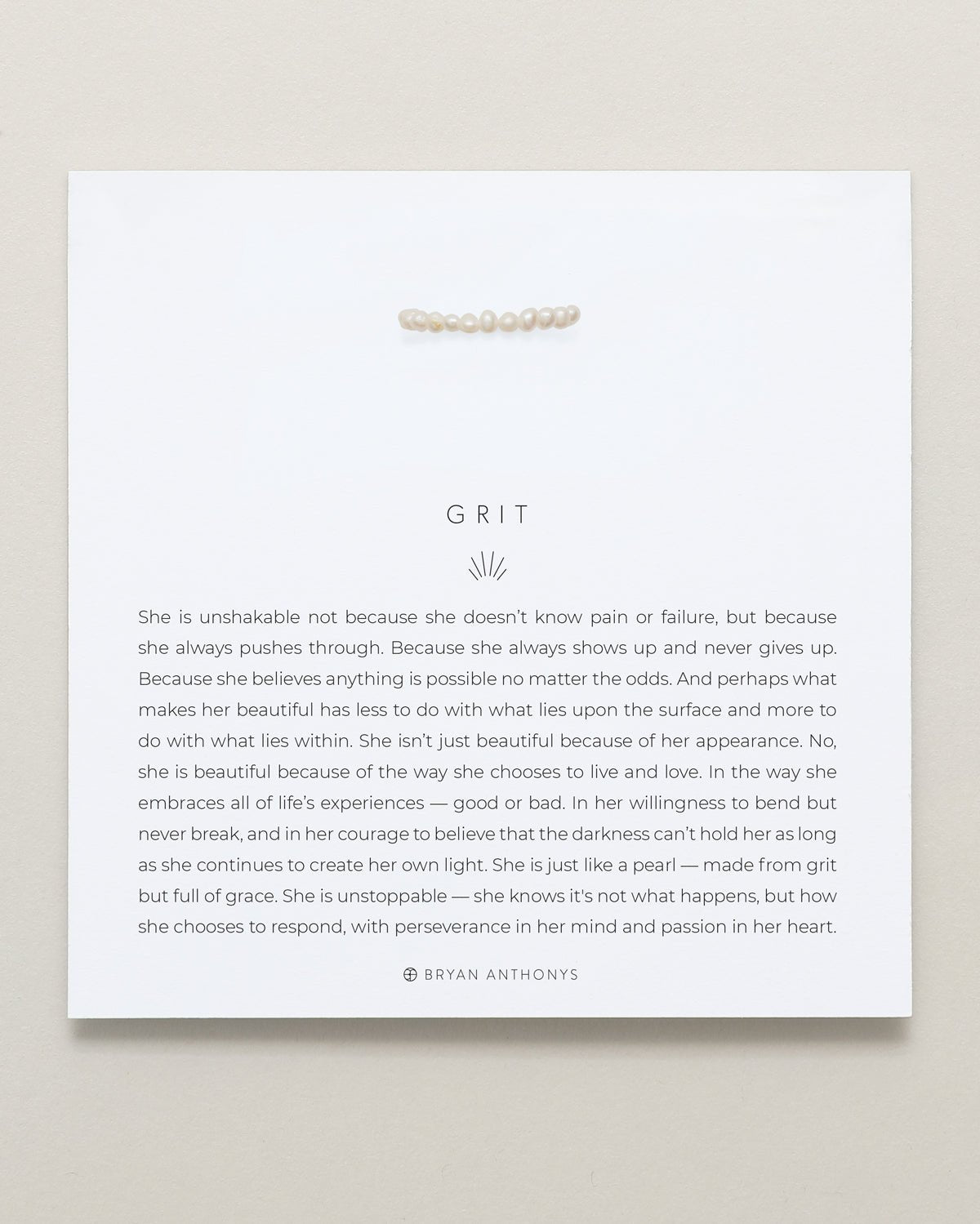 She is unshakable not because she doesn’t know pain or failure, but because she always pushes through. Because she always shows up and never gives up. Because she believes anything is possible no matter the odds. And perhaps what makes her beautiful has less to do with what lies upon the surface and more to do with what lies within. She isn’t just beautiful because of her appearance. No, she is beautiful because of the way she chooses to live and love. In the way she embraces all of life’s experiences — good or bad. In her willingness to bend but never break, and in her courage to believe that the darkness can’t hold her as long as she continues to create her own light. She is just like a pearl — made from grit but full of grace. She is unstoppable — she knows it's not what happens, but how she chooses to respond, with perseverance in her mind and passion in her heart.