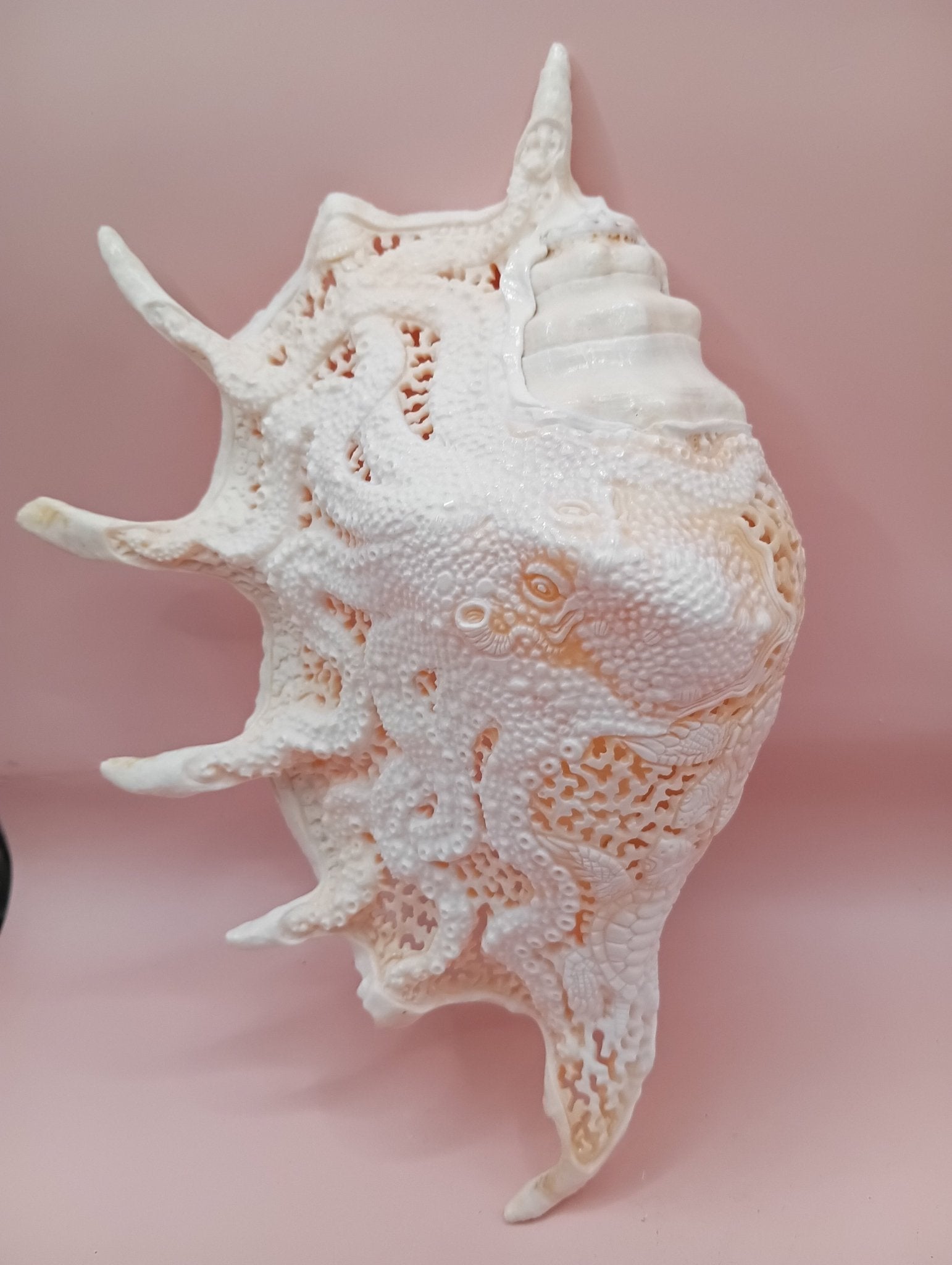 Hand-Carved Lambis Truncata Shell – Octopus Design – 9.5" Coastal Art Decor