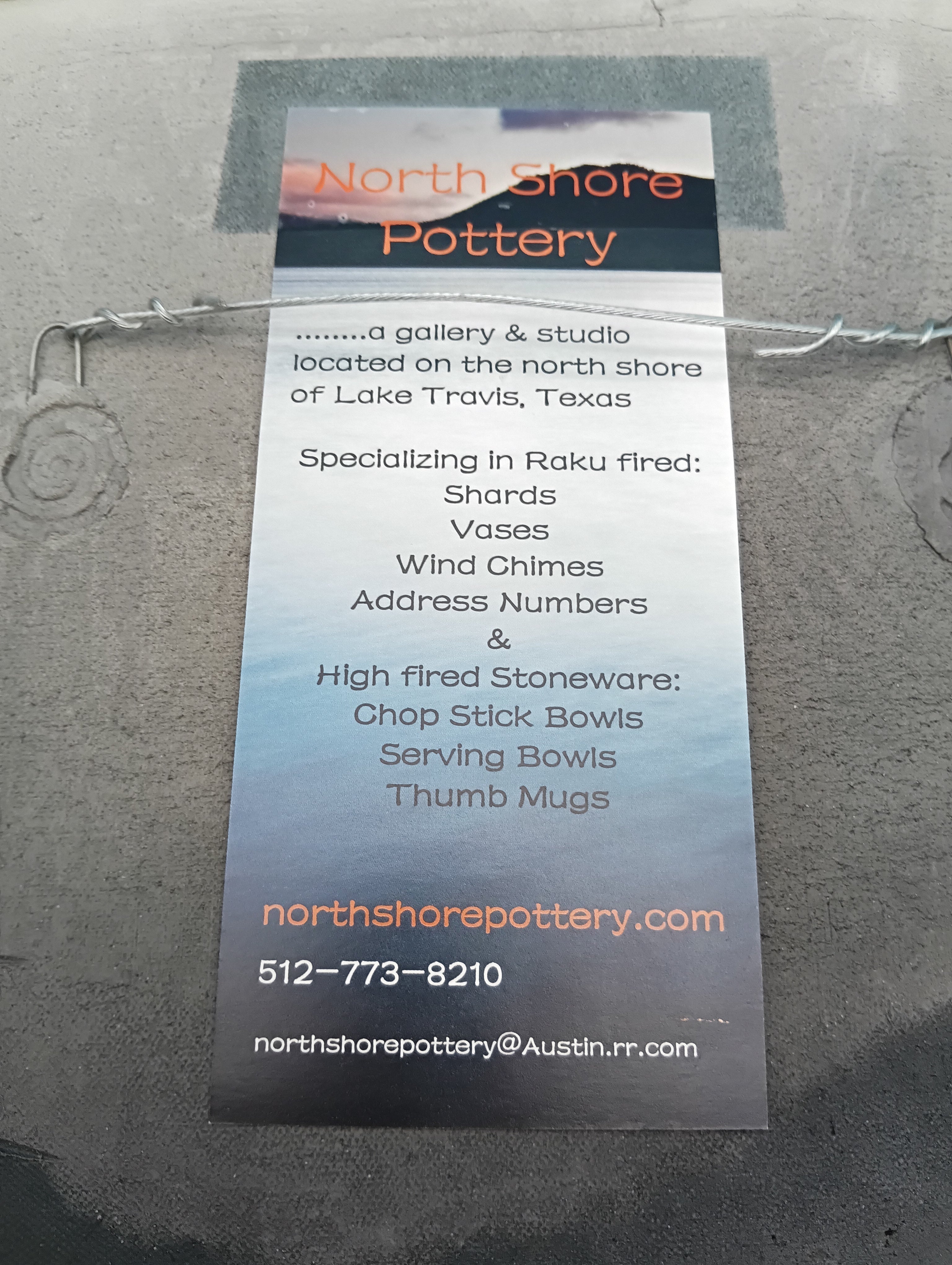 - Original artwork by Bobbie McCrea, North Shore Pottery (Lake Travis, Texas)
