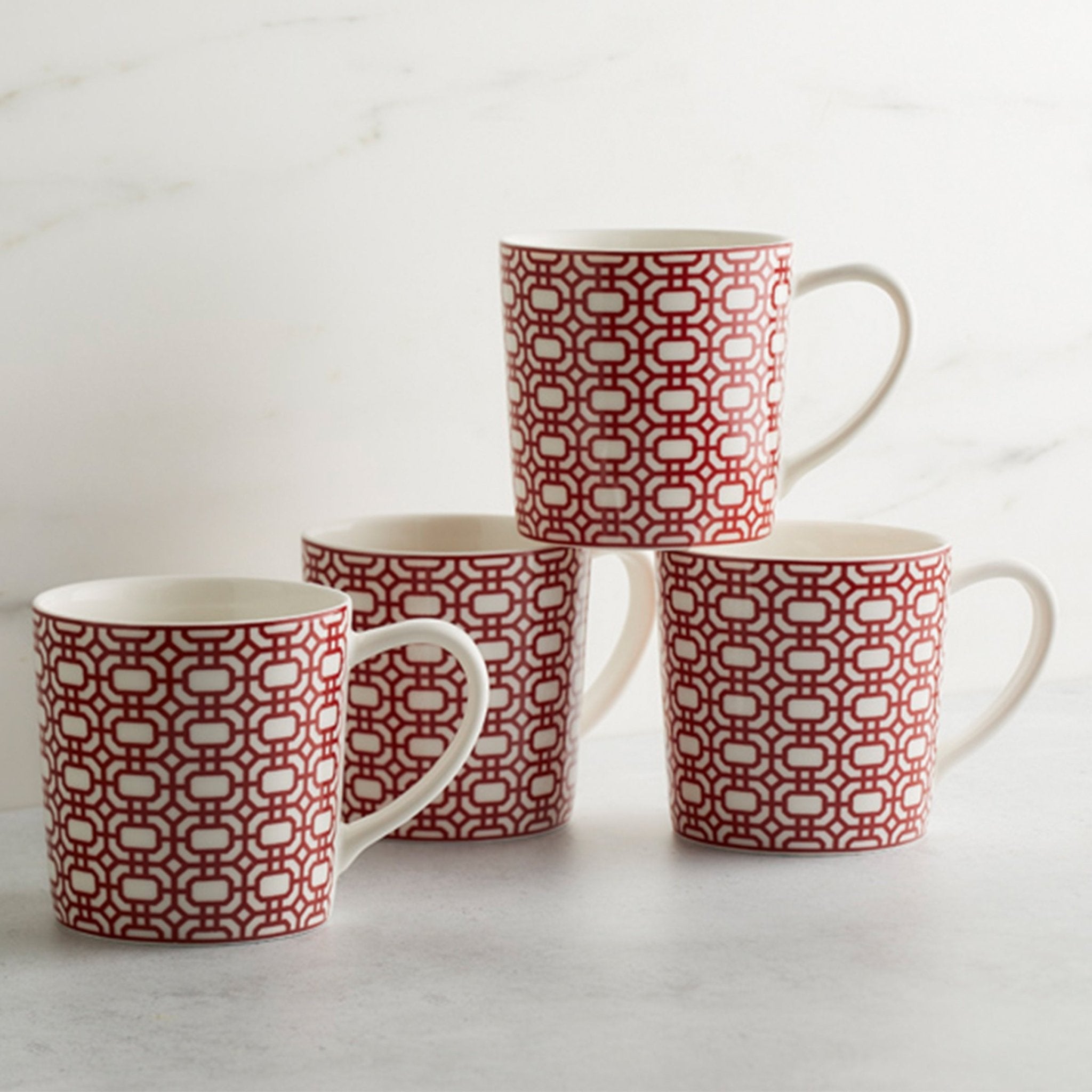 Newport Garden Gate Mug in Red, Blue, or Green | 14oz Geometric Porcelain Coffee Cup