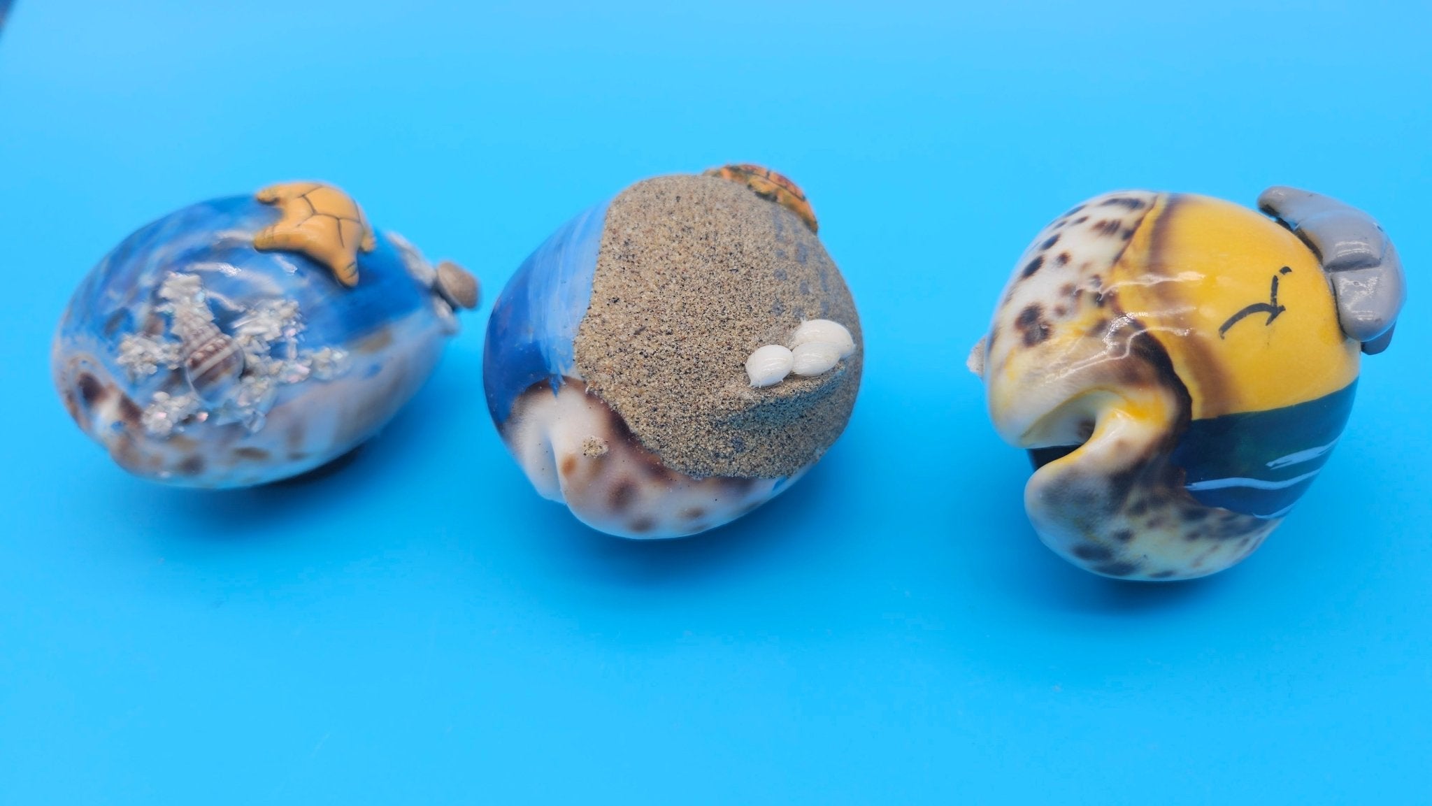 Whether you love turtles, dolphins, or sandy shorelines, these painted cowrie shell magnets capture the spirit of the sea and add a whimsical coastal touch to any space.