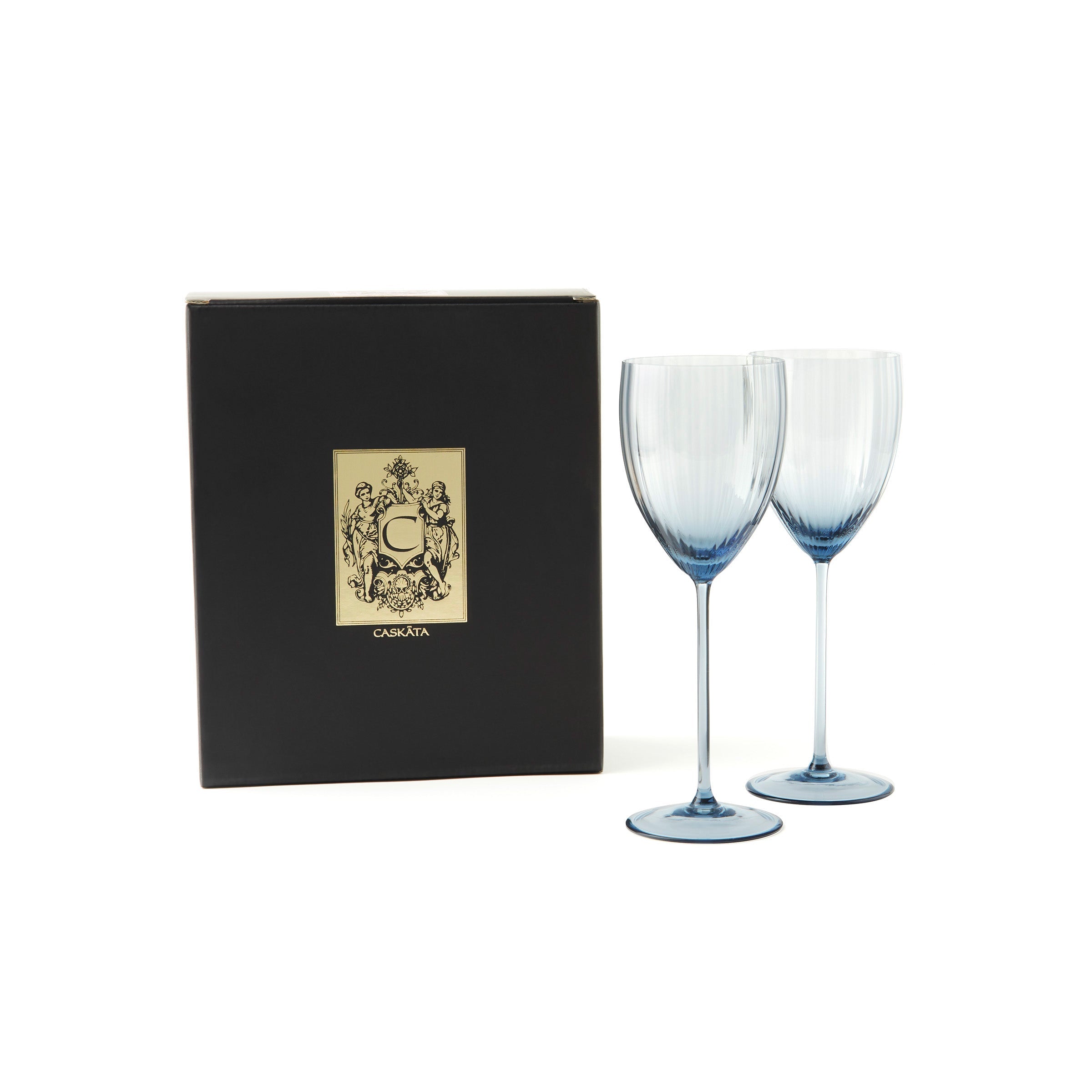 Quinn White Wine Glasses, Set of 2 – Mouth-Blown Optic Crystal (Citrine, Amber, Rose, or Ocean)