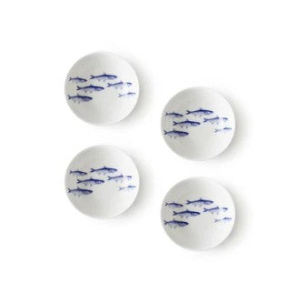 School of Fish Blue and White Porcelain Canapé Plate-Single Plate