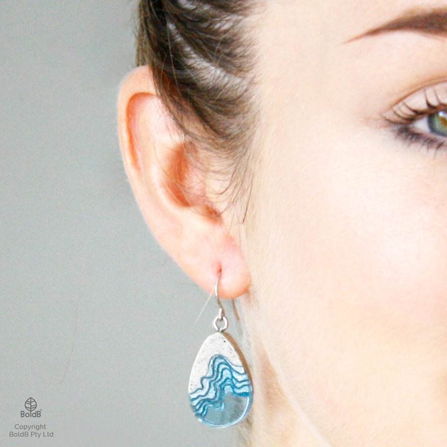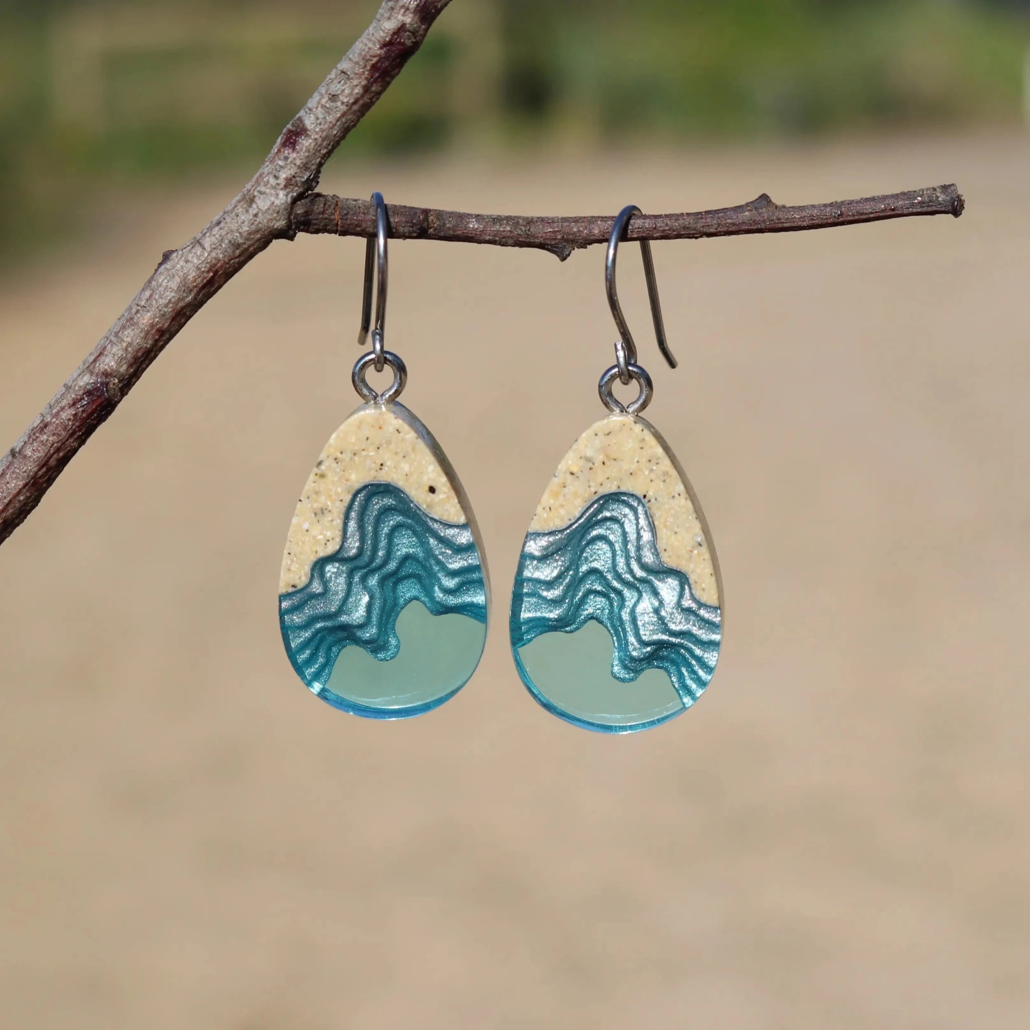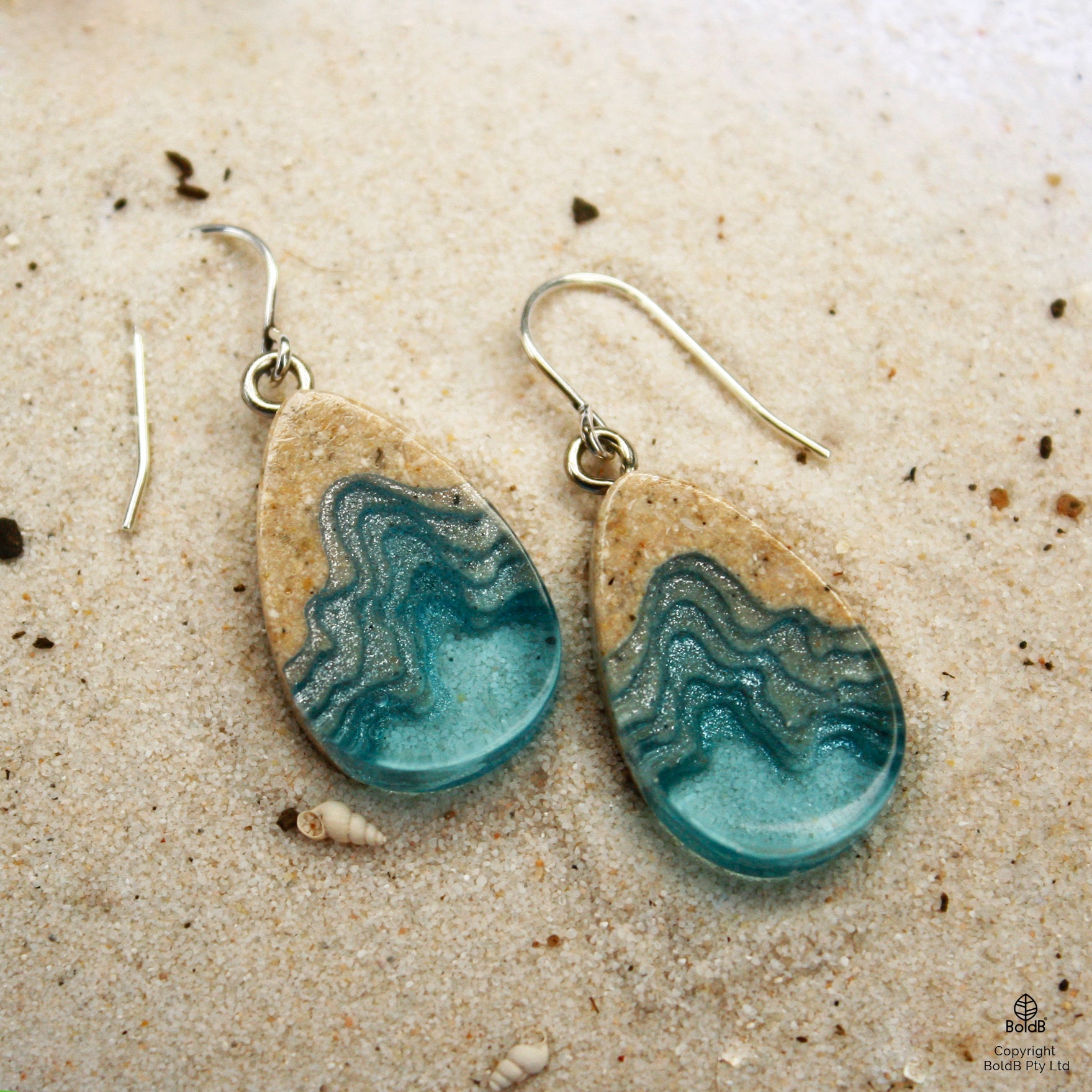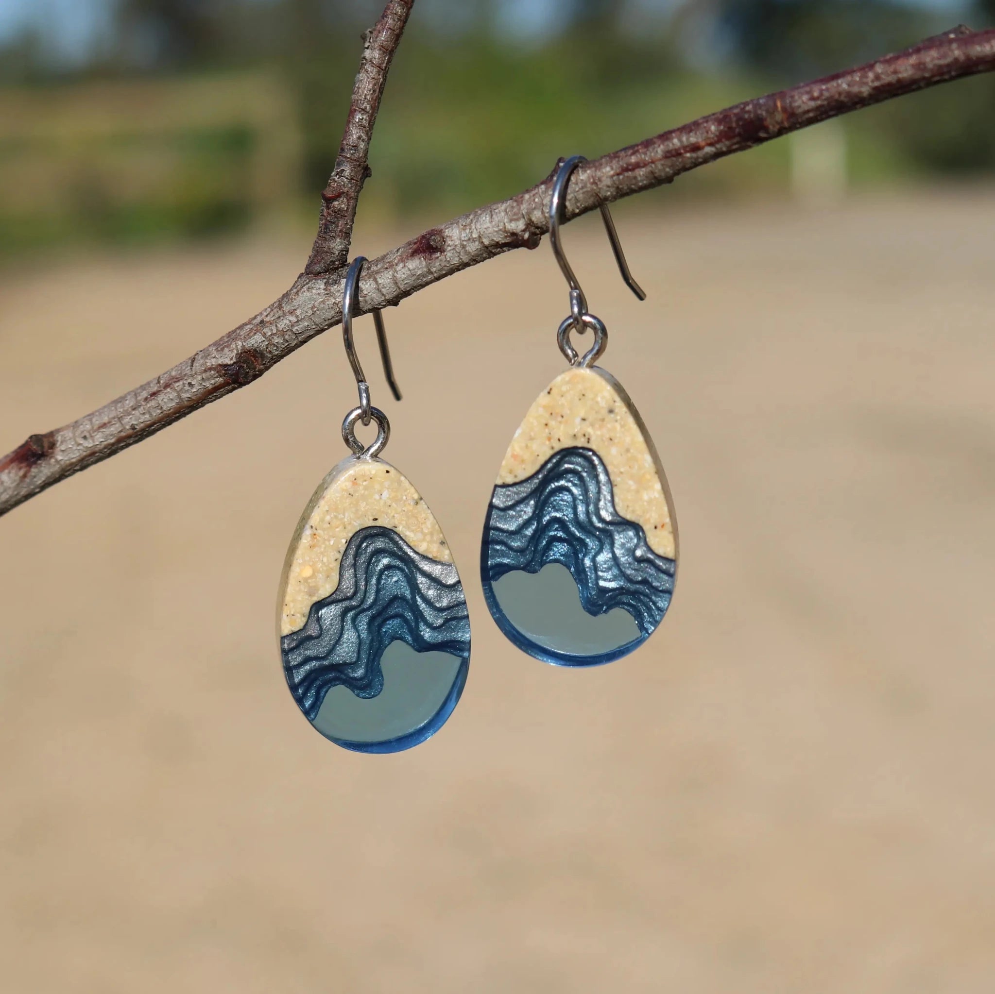 Seashore Dangle Earrings – Aqua & Ultramarine Resin with Sand Design
