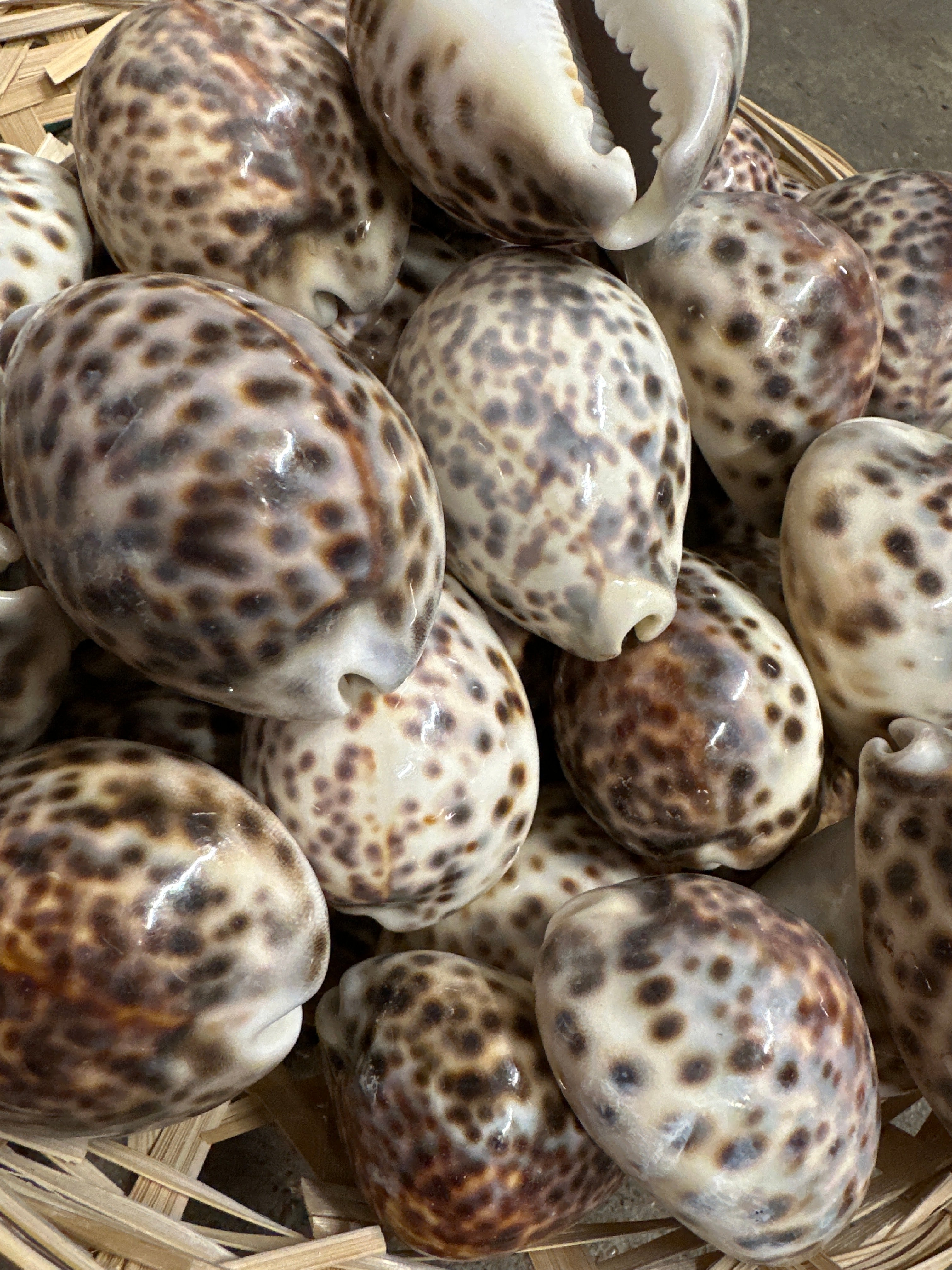 Beautiful (naturally smooth by sea, some will have slight calcium buildup) tiger cowrie shells are perfect for crafting or decorating! The shells measure approximately 3"+ inches in length. These rich chocolate toned shells are perfect to use for creating mirrors, wreaths & floral arrangements. They make lovely accents at weddings.