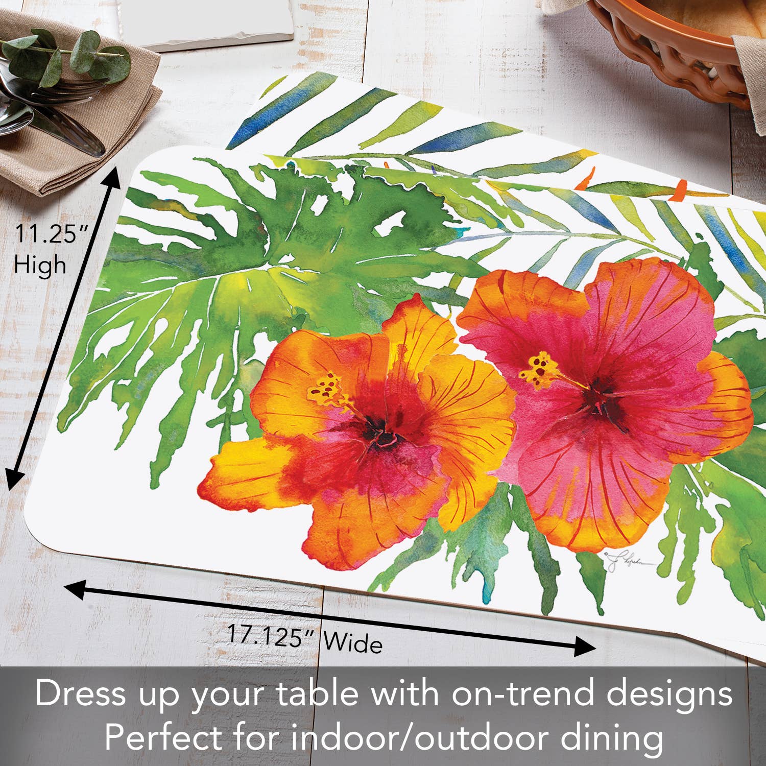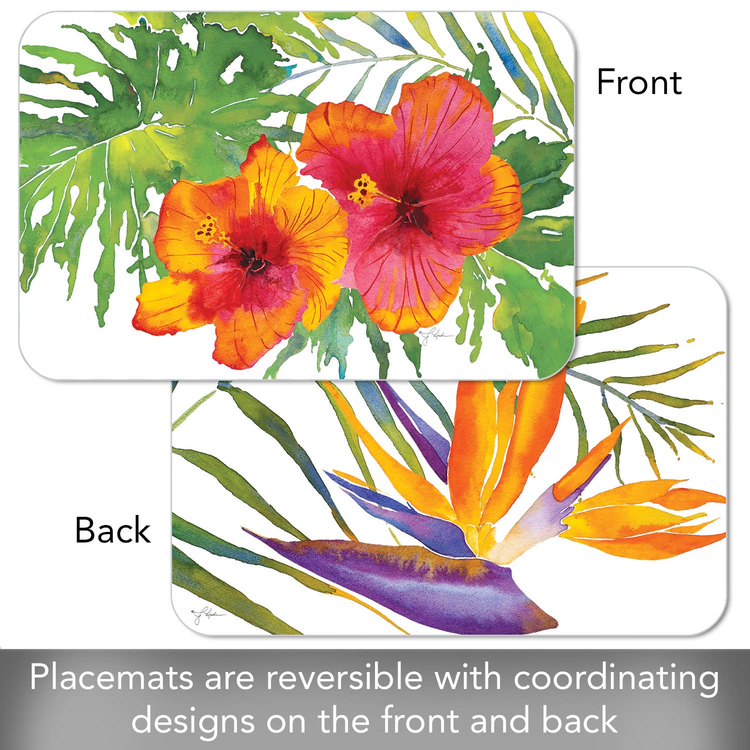Brighten your table with the Tropical Paradise Reversible Placemat. One side features vibrant hibiscus blooms, and the other showcases a striking bird of paradise design — perfect for adding a lively island touch to any meal.