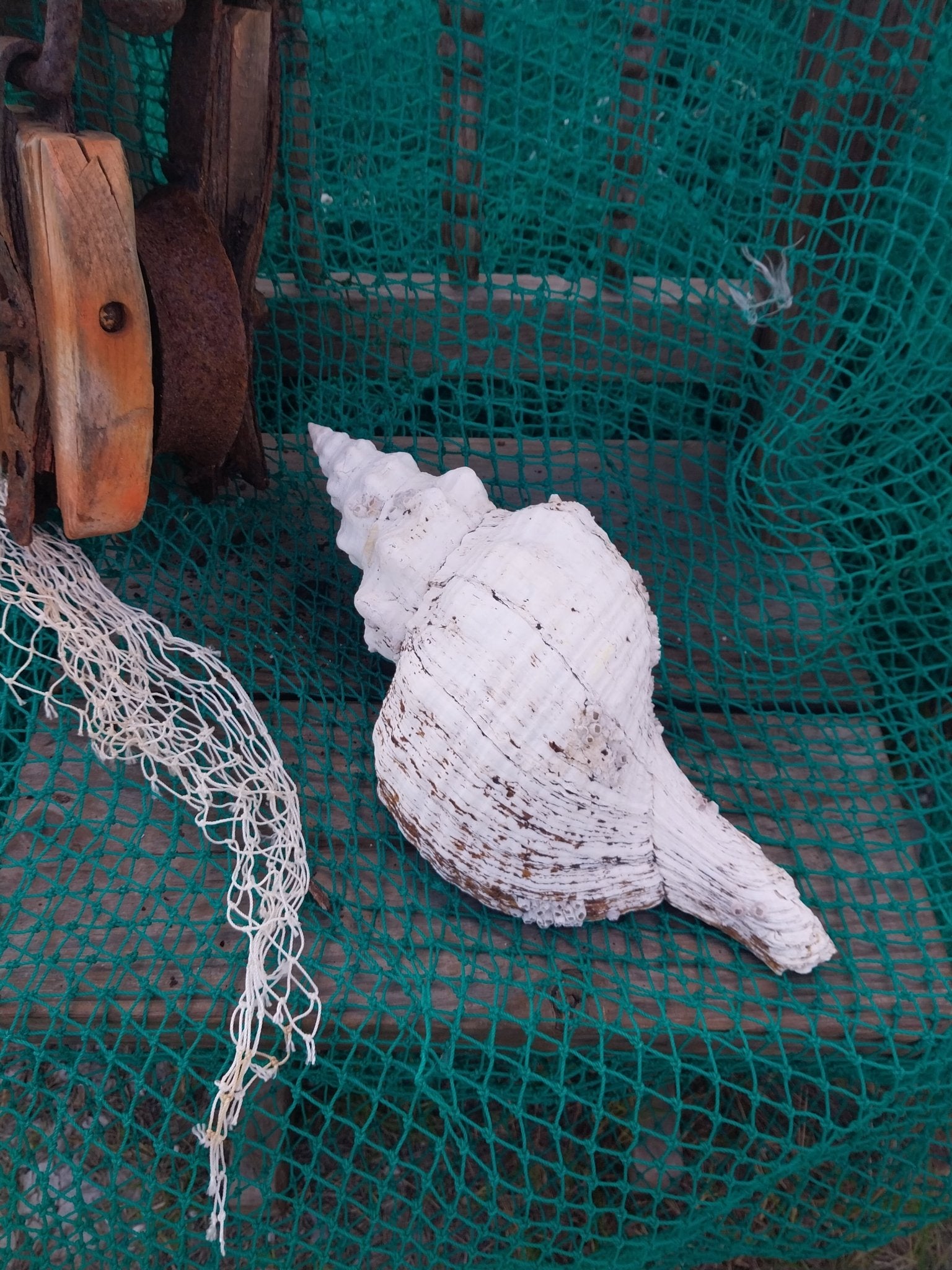 Make a bold coastal statement with this oversized vintage Horse Conch shell, complete with its naturally preserved periostracum. At an impressive 15 inches long, this shell is packed with coastal texture, weathered charm, and seafaring history. Its rough outer layer and sculptural shape make it a standout centerpiece for any nautical or nature-inspired space.